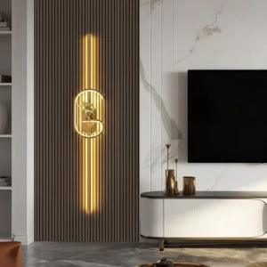 Golden Finish LED Light Long Tube Wall Lamp - Tricolour