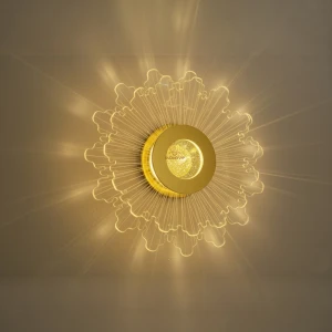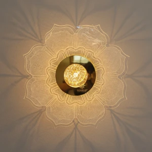 Golden Acrylic Flower Shape Wall Light - Tricolour