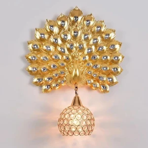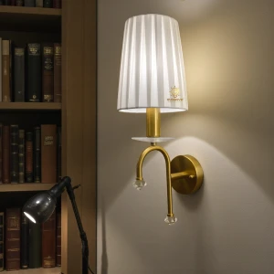 Antique Gold Finish Body with Crystal Fabric Lampshade Wall Lamp - Warm White