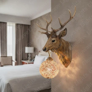 Royal 3D Deer Head Golden Statue Style Decoration Dual Purpose Wall Lamp - Warm White