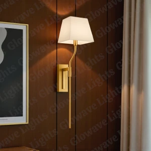 Antique Gold Finish Body Fabric Lampshade Wall Lamp - Warm White
