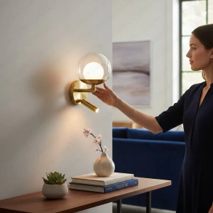 Clear Glass Ball Golden Body LED Wall Lamp - Tricolour