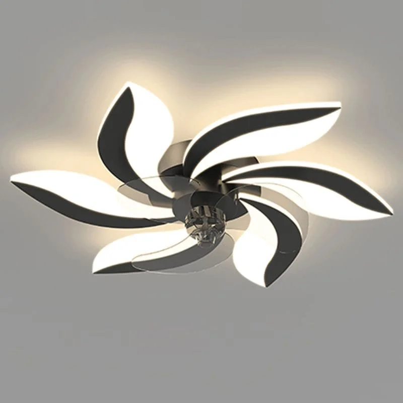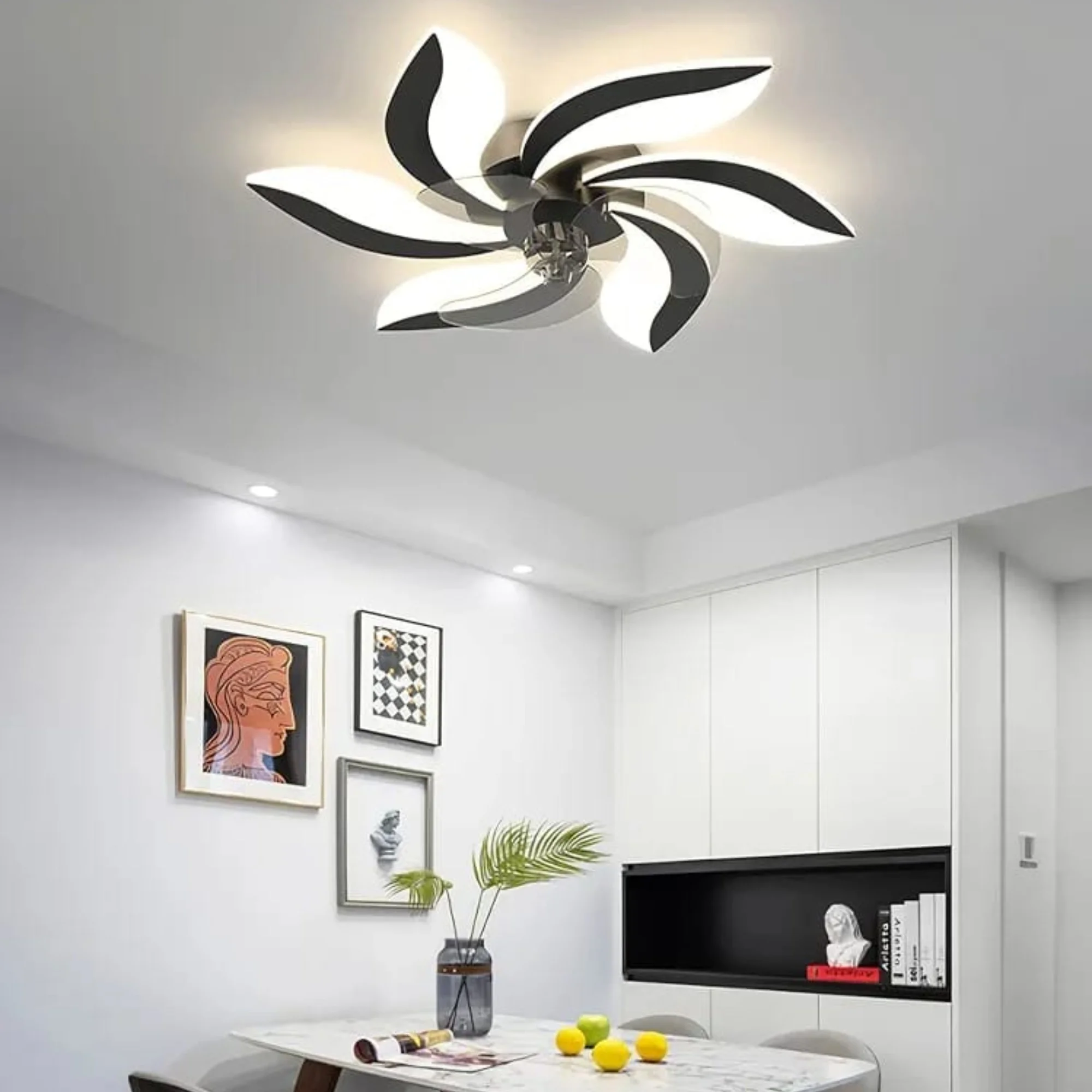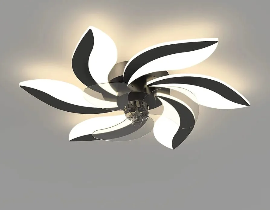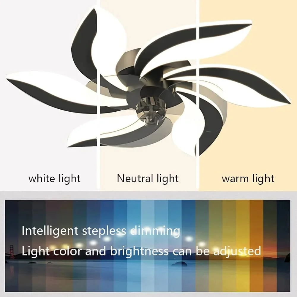 Elevate your living space with the Luxury Black Flower Shape Ceiling Fan Light. This stunning fan lighting fixture features a sophisticated design with accents, adding a touch of luxury to any room. With three adjustable color lights, it seamlessly adapts to your desired ambiance. Ideal for living rooms, bedrooms, dining areas, entrances, showrooms, and cafés, this versatile chandelier combines style and functionality. The ABS blades provide efficient air circulation when extended and a sleek, unobtrusive look when retracted. Enjoy a blend of elegance and practicality with this exquisite ceiling fan light.