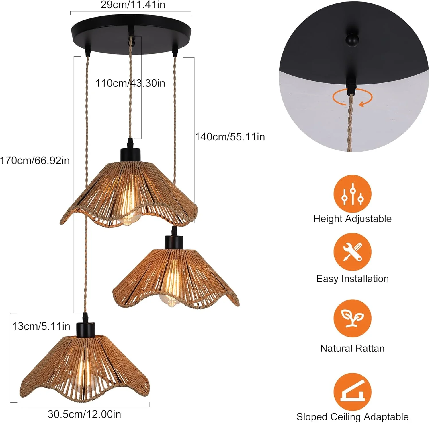 - Adjustable hanging length for flexible installation