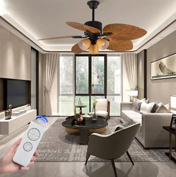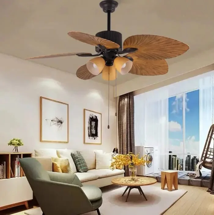 - Elegant Design: Features a durable metal body with five brown ABS blades disguised as palm leaf wooden crafted blades.