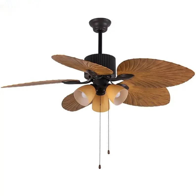5 Brown Palm Leaf Wooden Crafted Blades Chandelier Fan Light