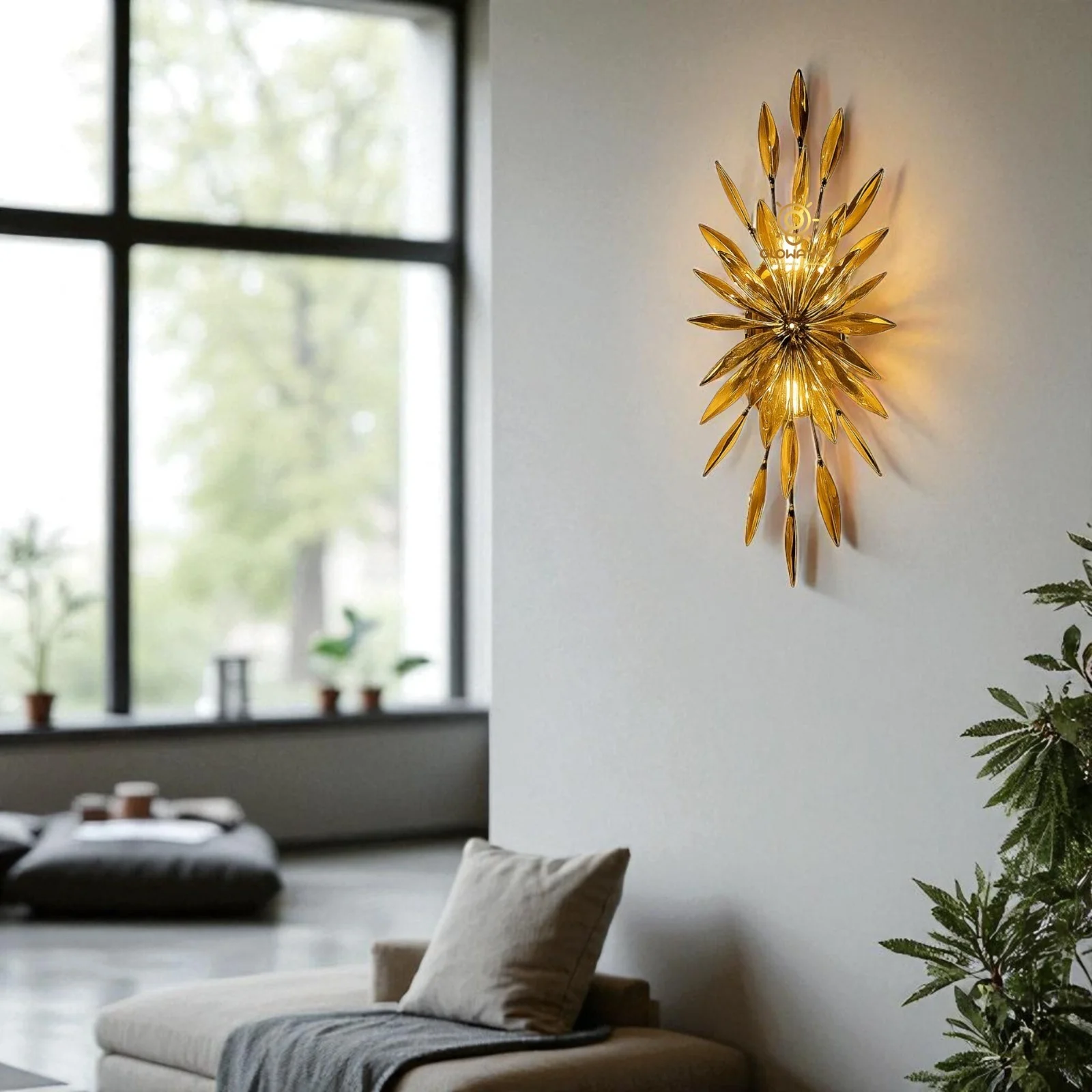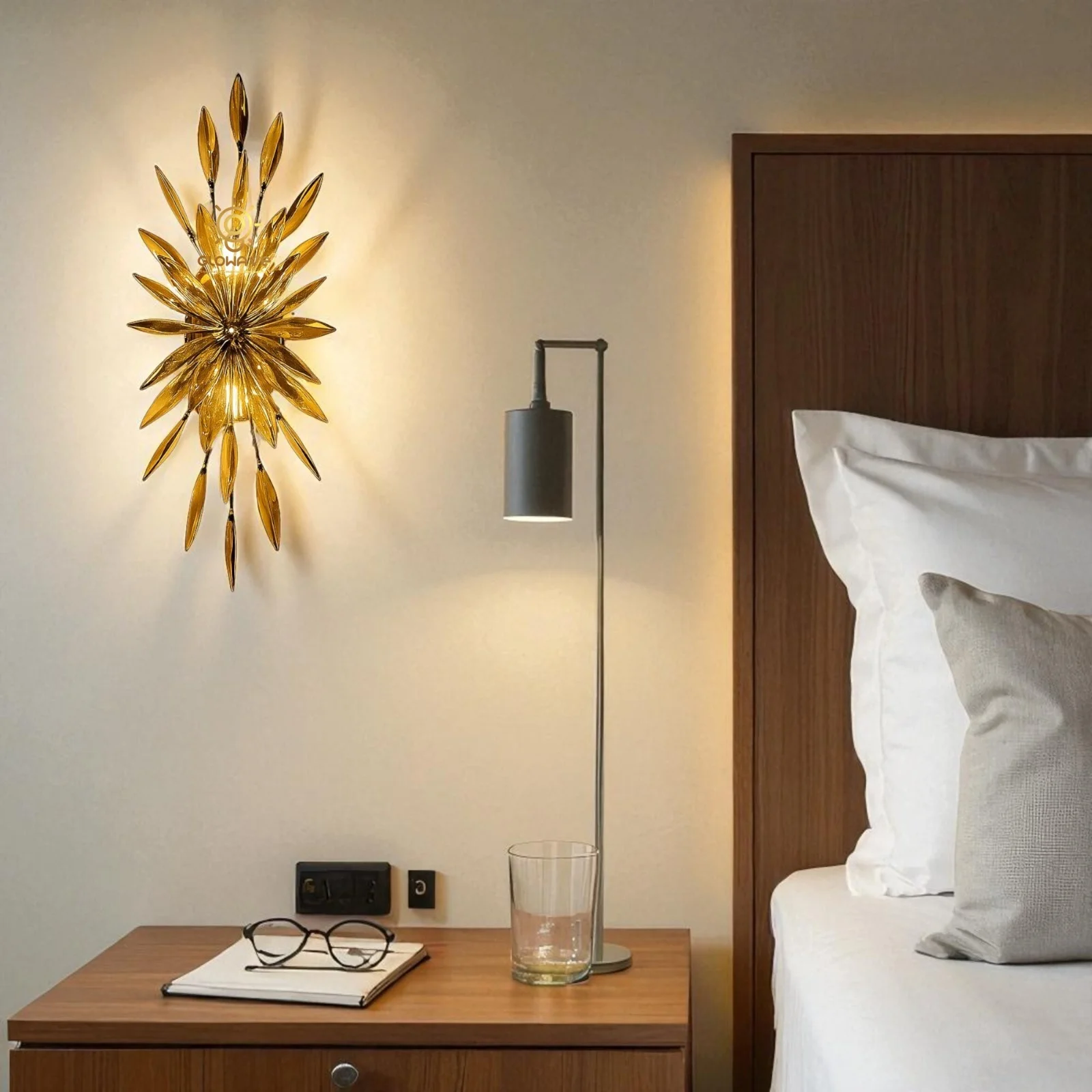 - Stylish Design: Amber Finish Crystal Shade Wall Sconce.