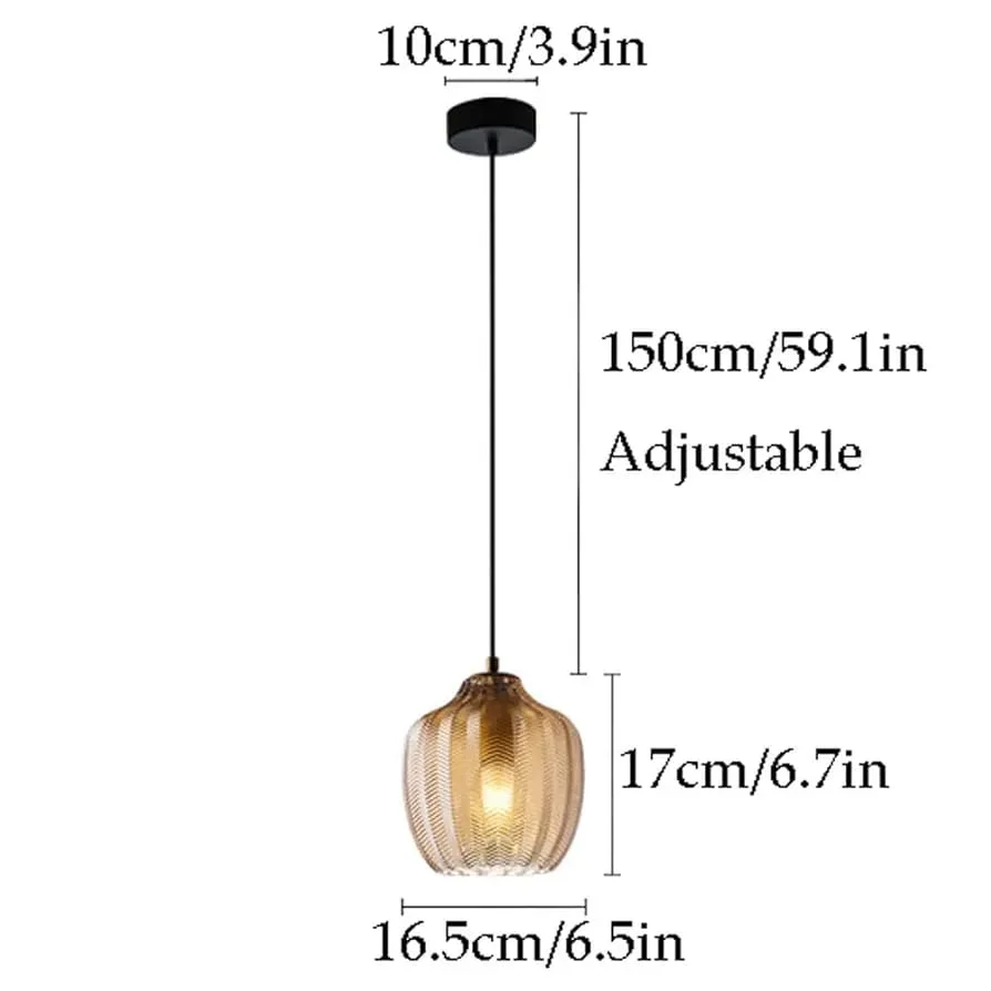 Amber Glass Pendant Lamp Hanging Light - Warm White