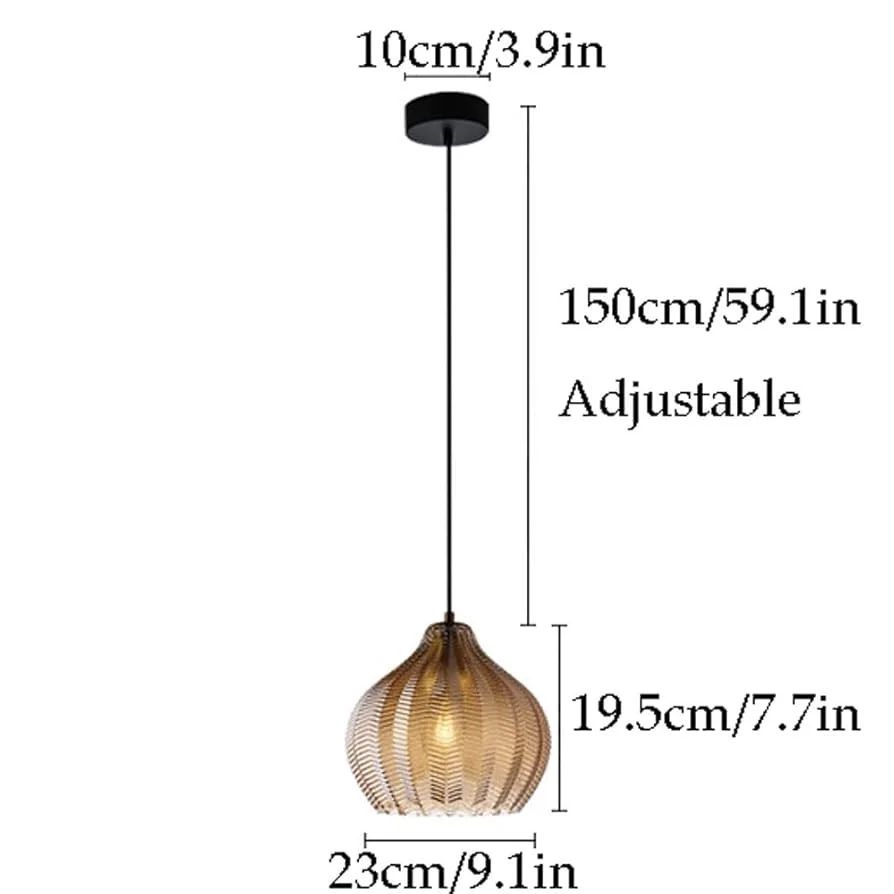 Vintage Metal Gold Brass Finish Amber Glass Pendant Hanging Lamp - Warm White