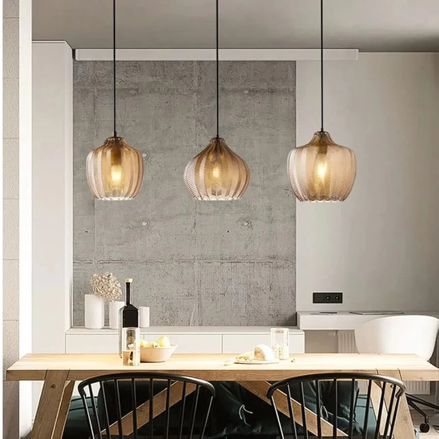 Amber Glass Pendant Lamp Hanging Light - Warm White