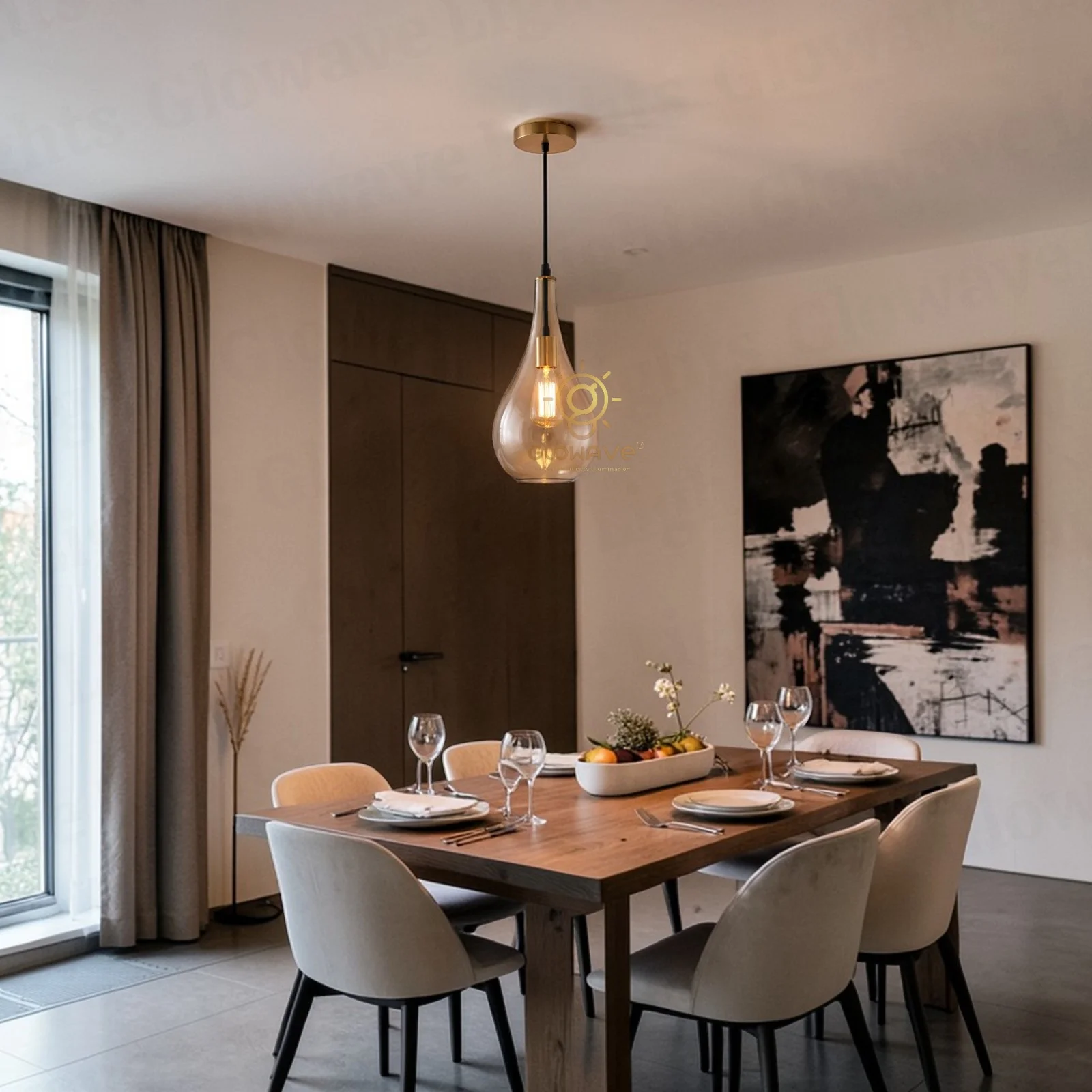 Enhance your interiors with this elegant Amber glass pendant light, designed to bring a warm and sophisticated ambiance to any space. Featuring a beautifully crafted teardrop-shaped glass shade with a premium tinted finish, this hanging light creates a soft, inviting glow that elevates the overall décor.