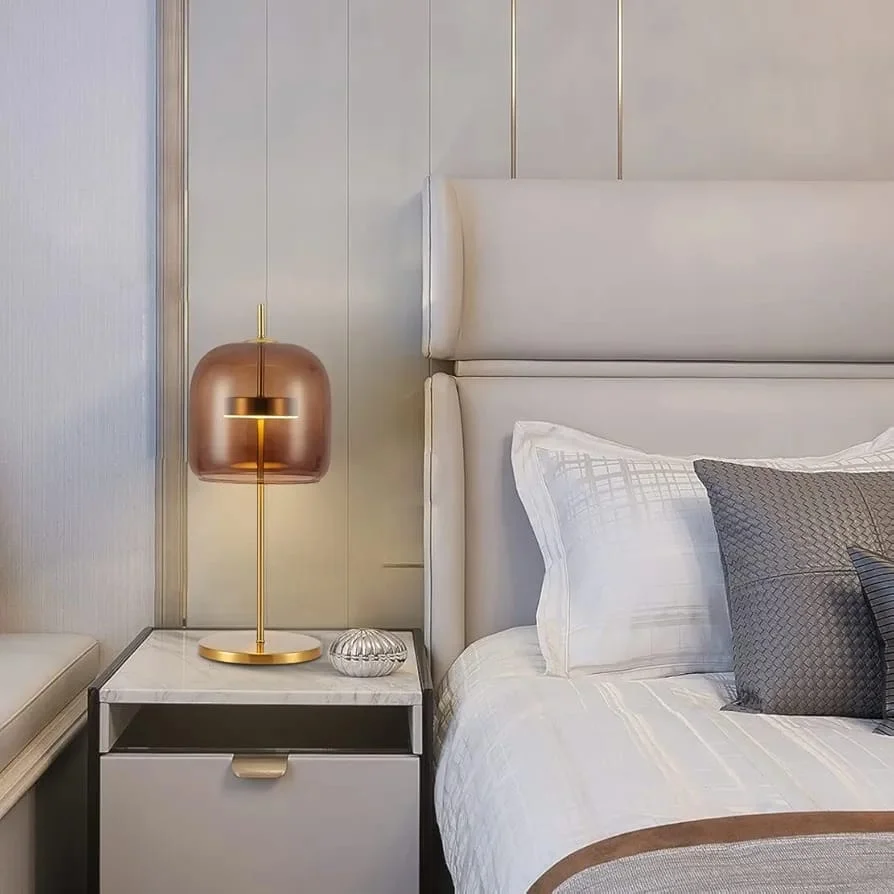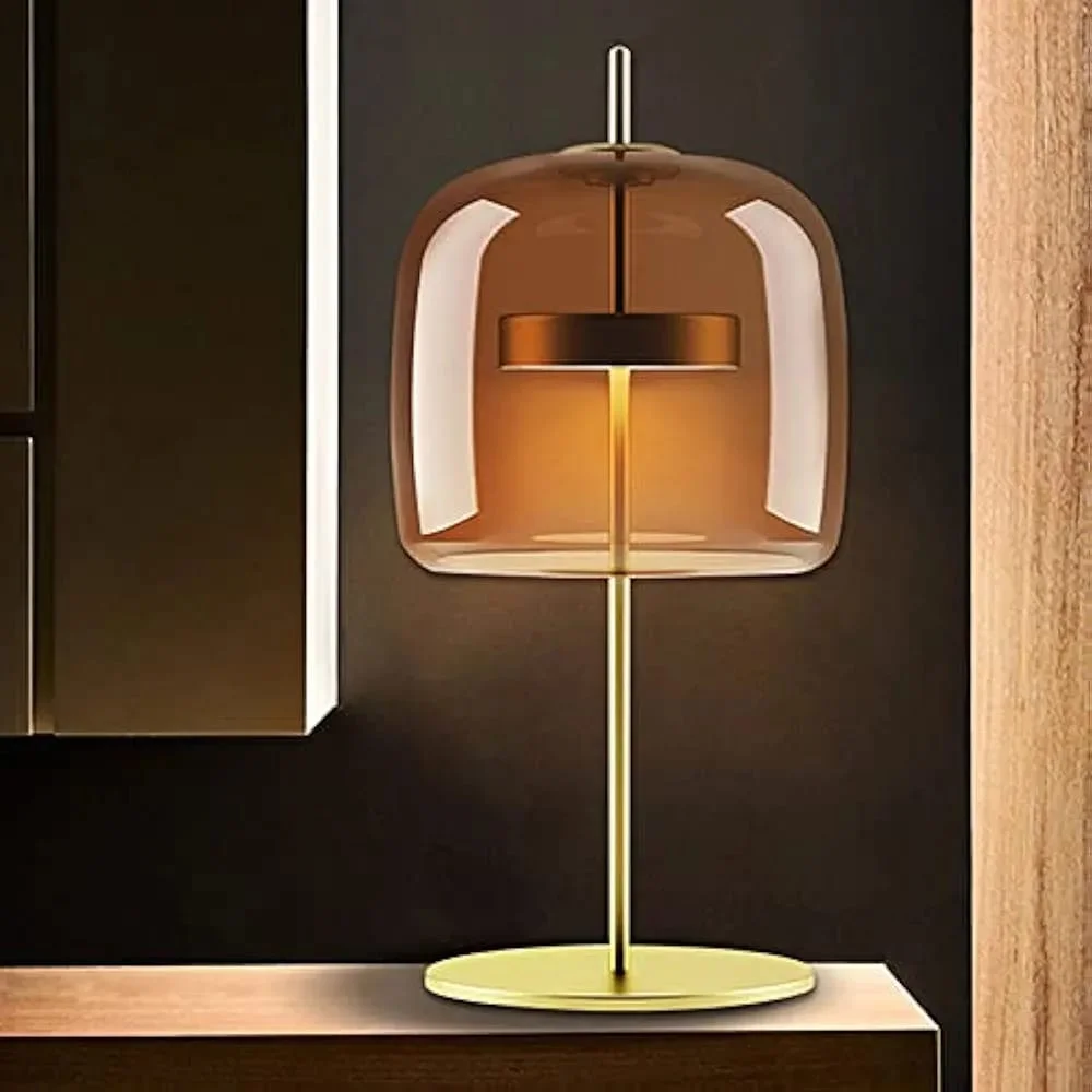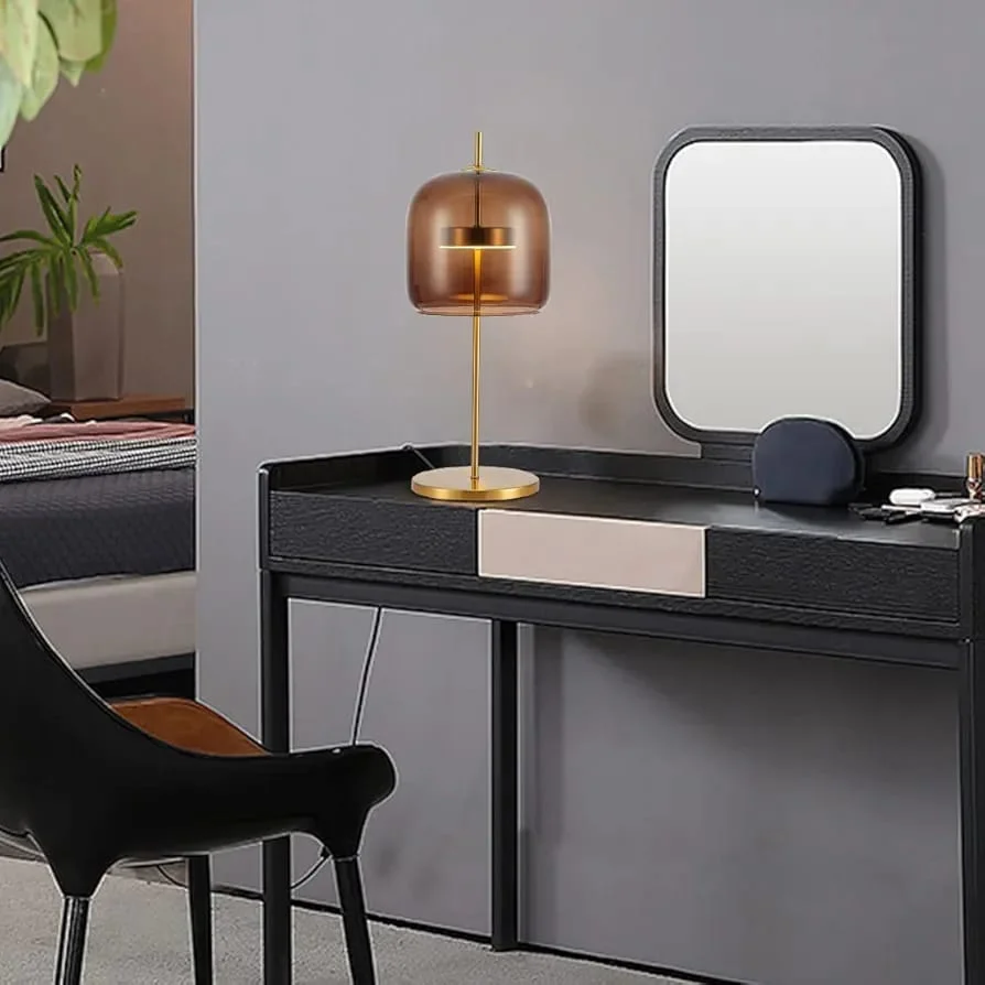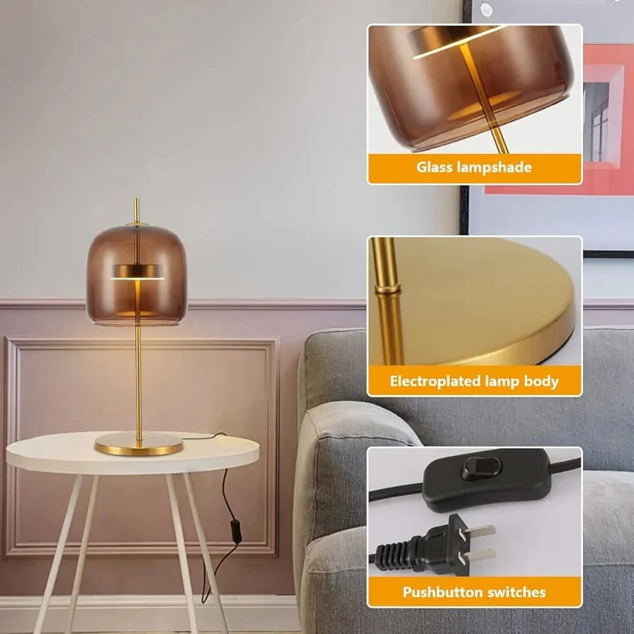 - Sleek and Modern Design: Amber Glass shade with a golden base, adding sophistication to any room.