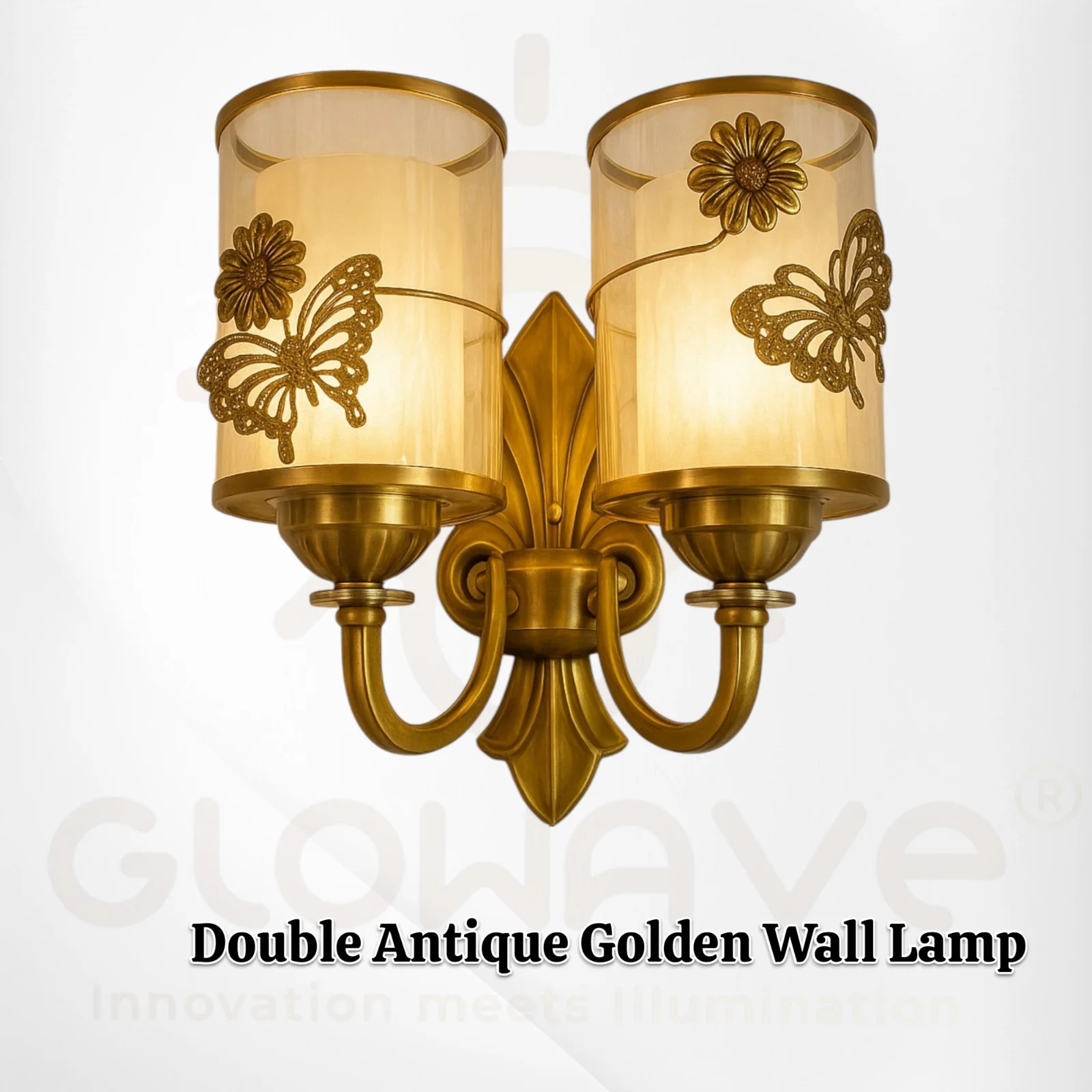 Antique Brass Finish Round Base Double Glass Vintage Light Wall Lamp - Warm White (B-3122/2W)