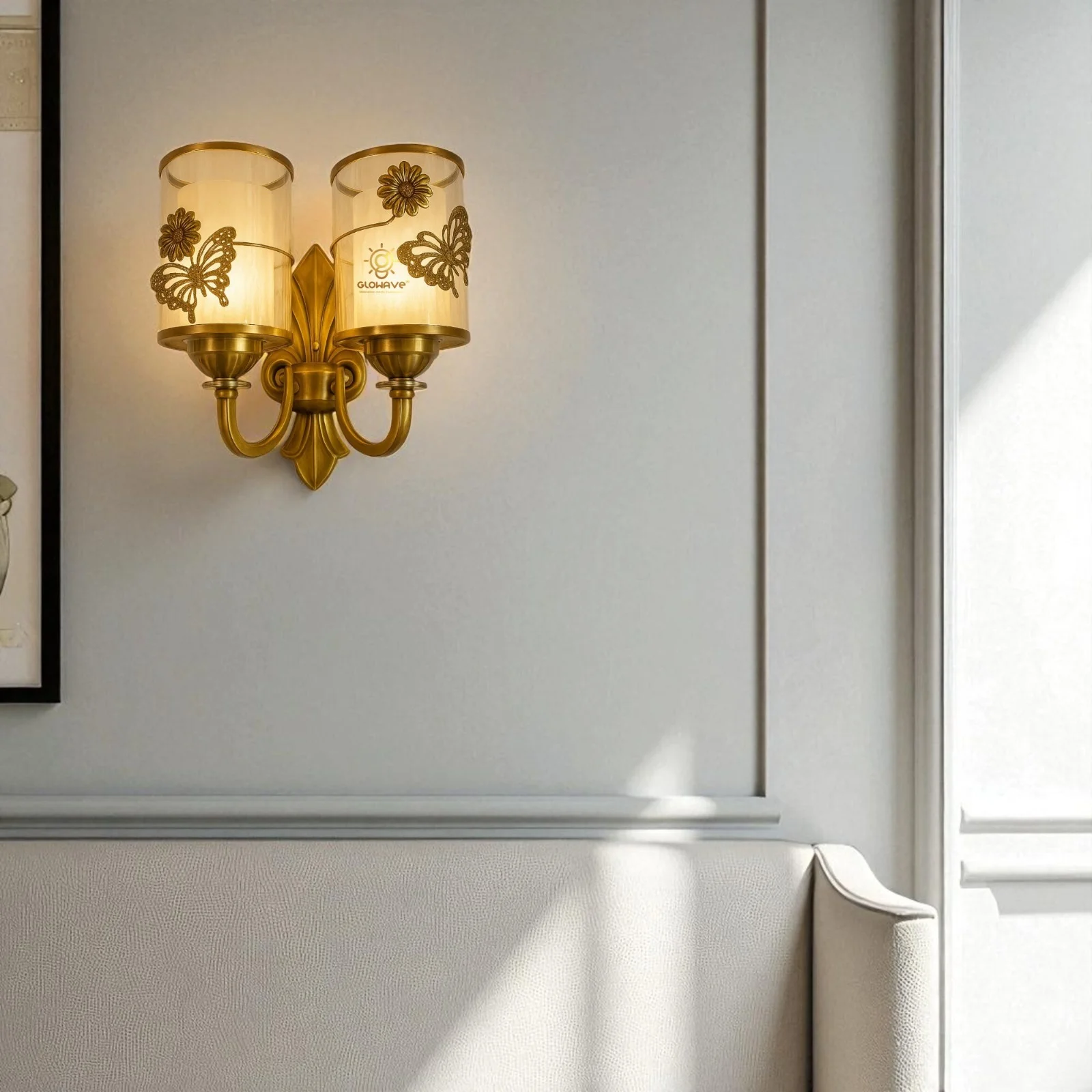 Enhance your home decor with the Antique Gold Finish Double Column Round Base Vintage Wall Lamp. This exquisite sconce fixture, perfect for living rooms, bedrooms, and bedsides, boasts a timeless antique brass finish and clear glass design. It casts a warm white light, creating a cozy and nostalgic atmosphere. Note: Bulb not included. Ideal for adding vintage charm to any space.