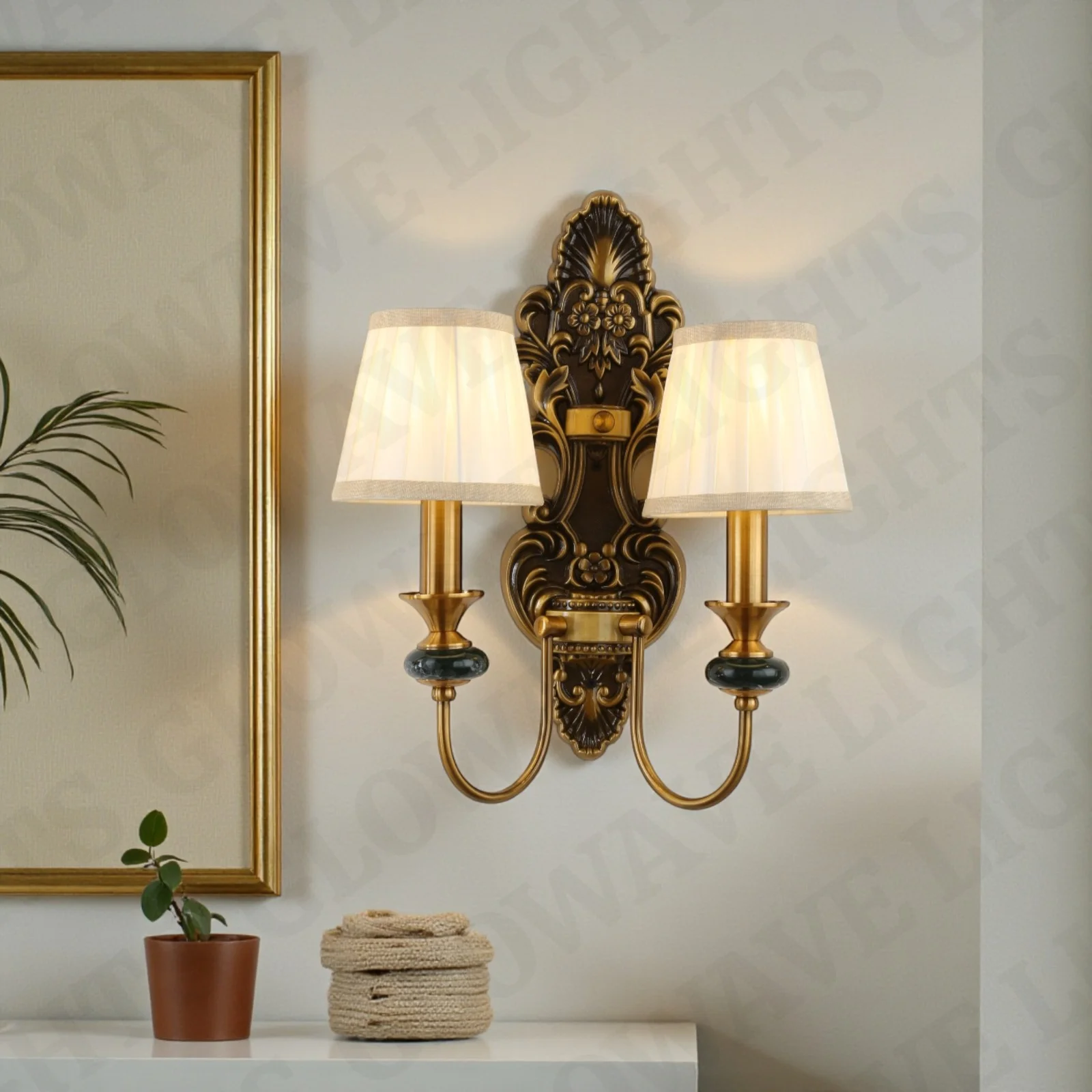- Stylish Design: Gold Finish Fabric Lamp Shade Wall Sconce.