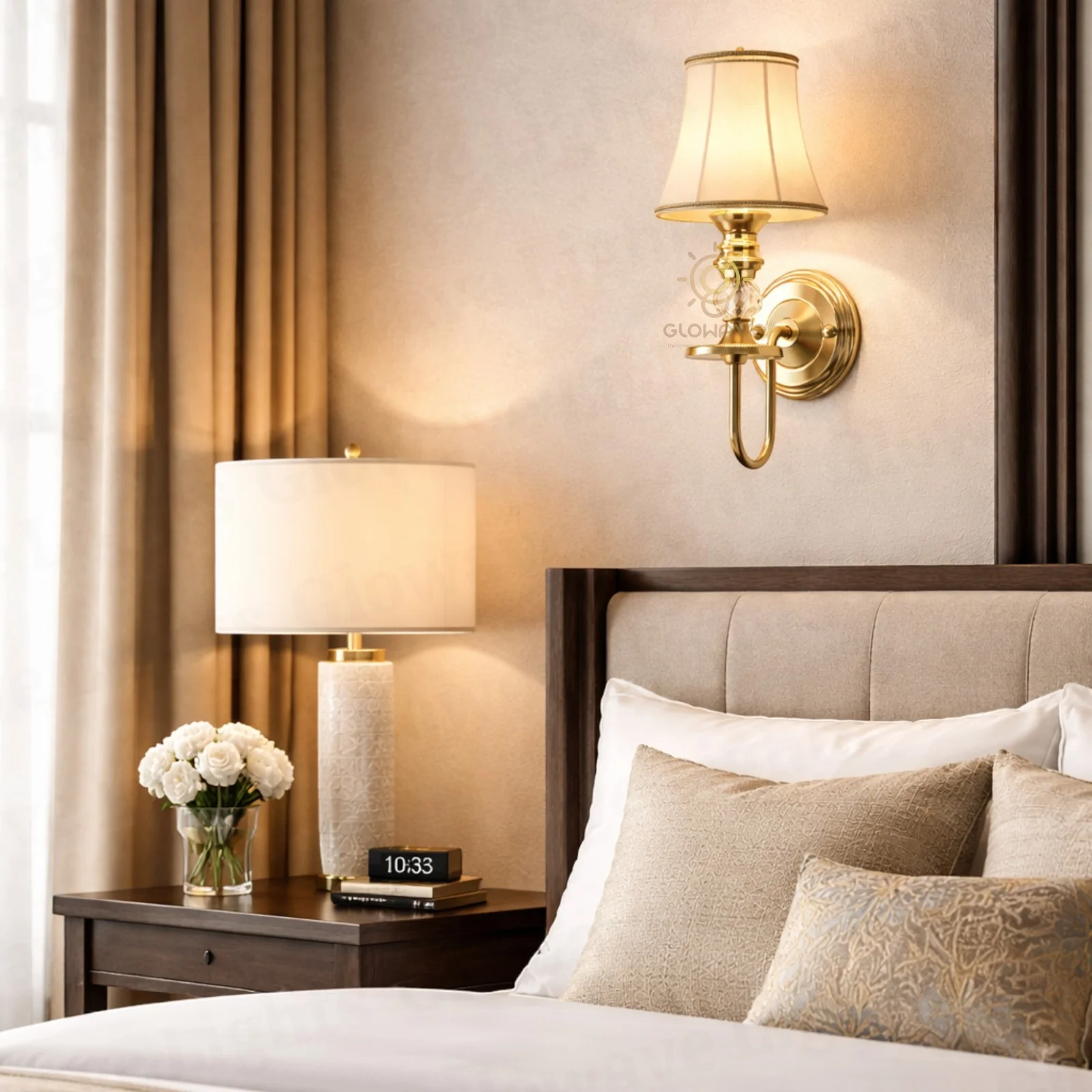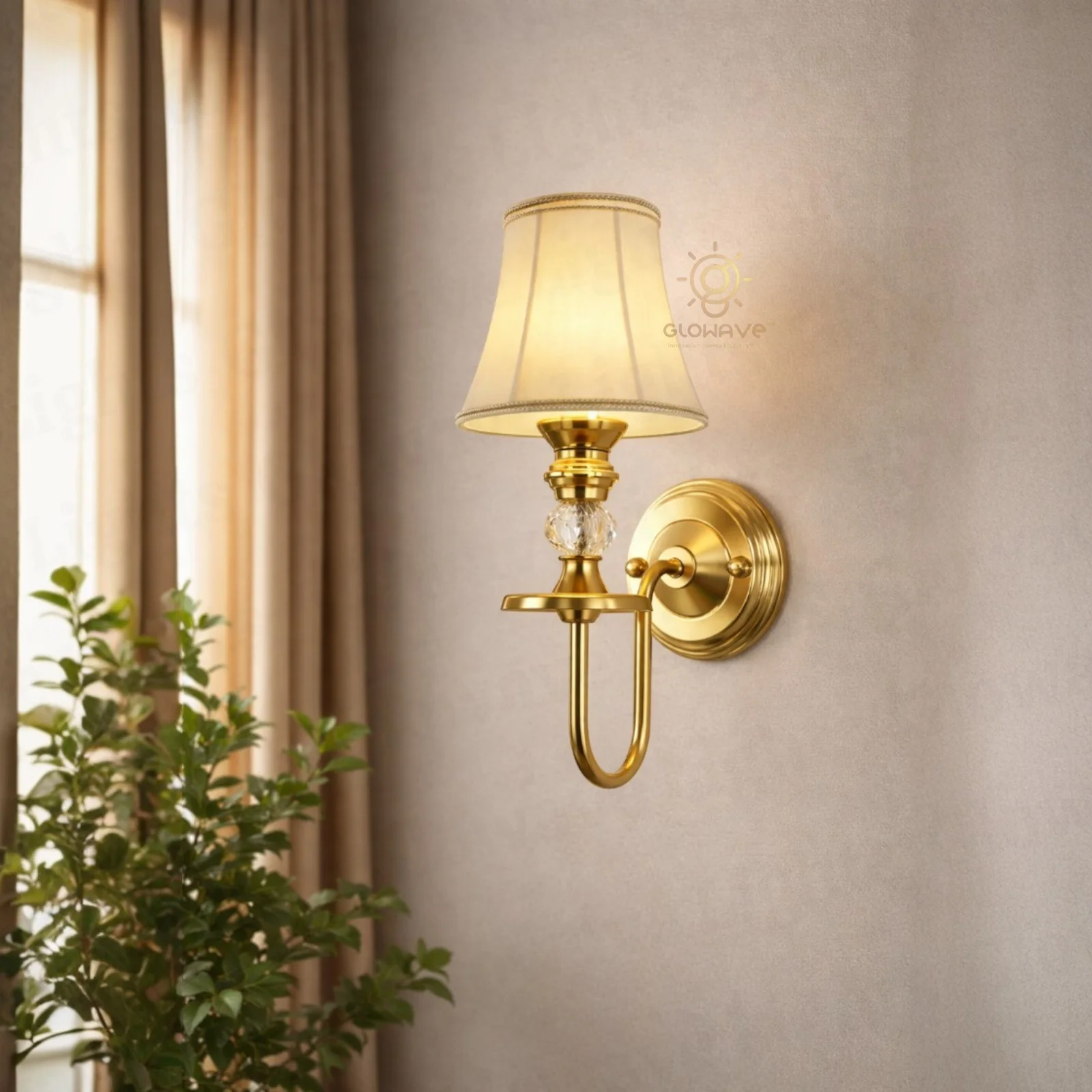 Gold Wall Light with Fabric Shade, Elegant Wall Sconce Lamp - Warm White