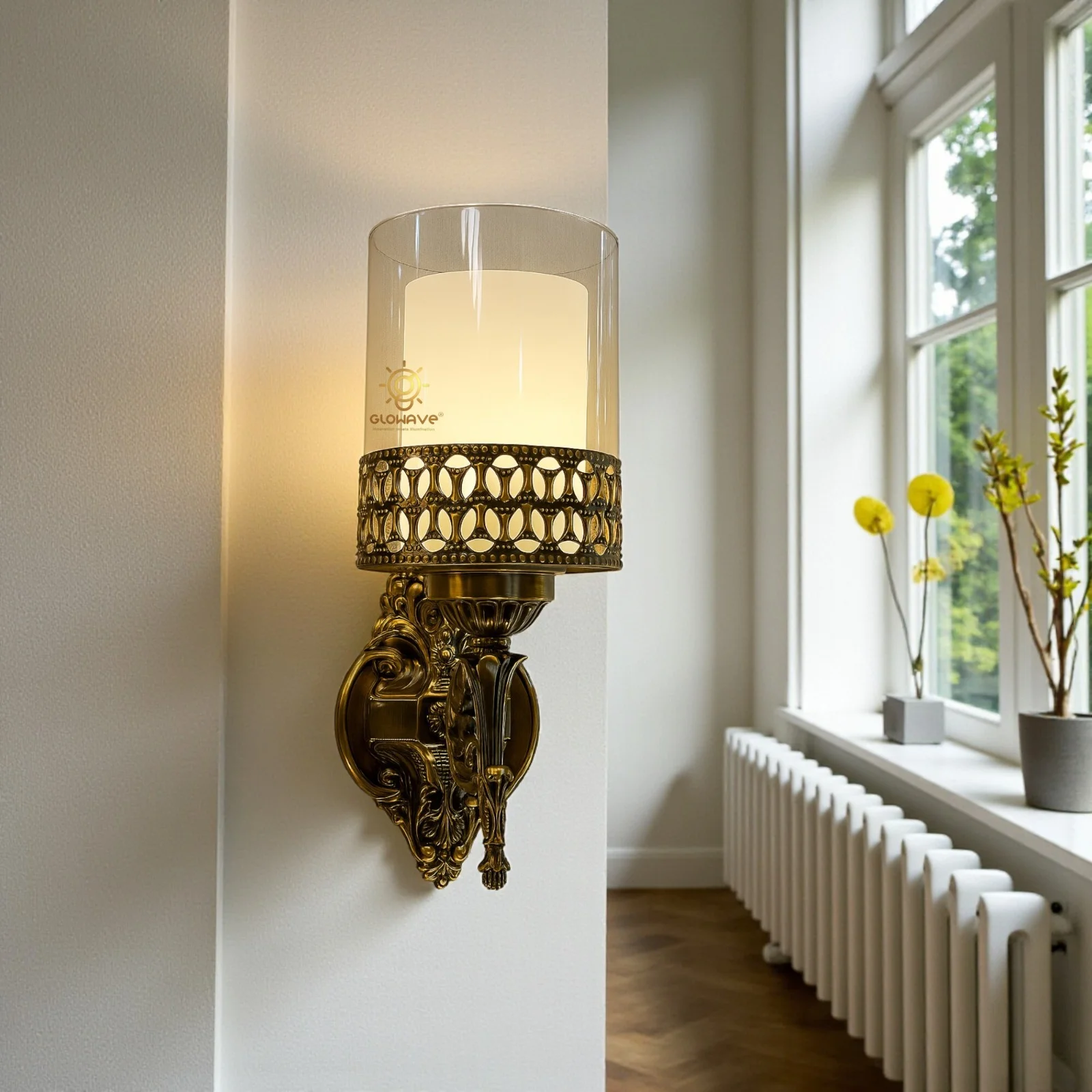 - Stylish Design: Antique Gold Finish Wall Sconce.
