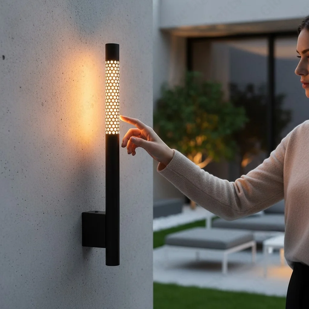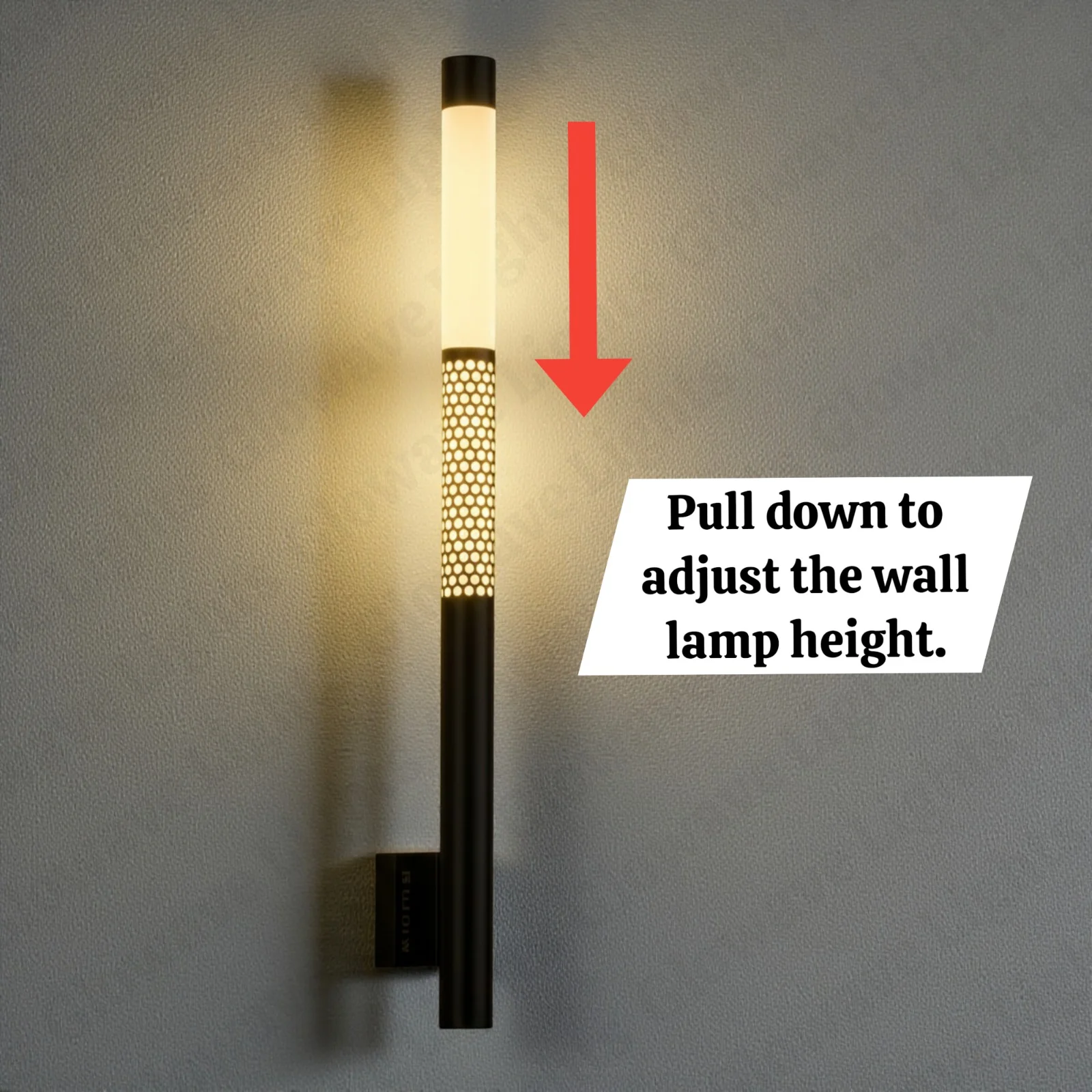 Black 700mm Metal LED Long Tube Wall Light with Adjustable Height - Tricolour