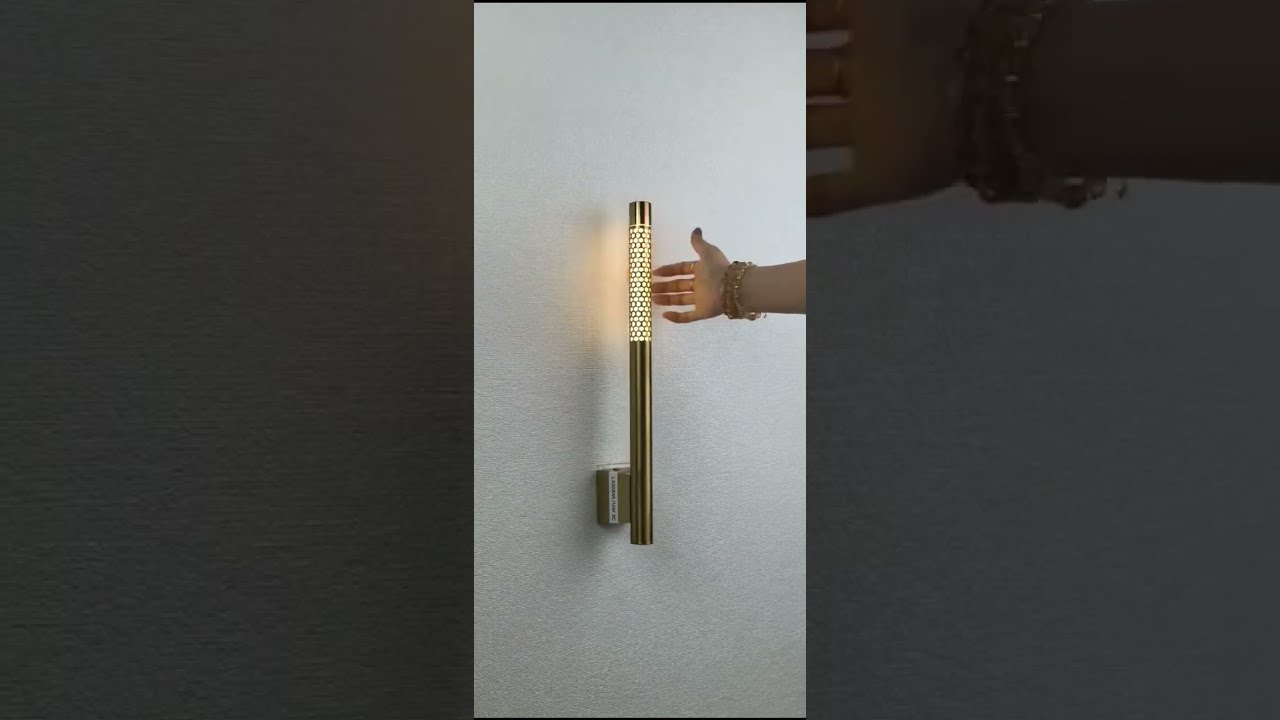 Golden 700mm Metal LED Long Tube Wall Light with Adjustable Height - Tricolour