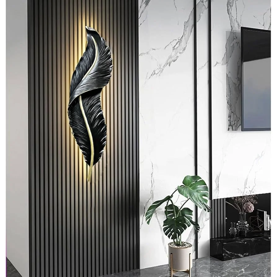 Black Feather Leaf Shape Wall Light - Tricolour (Black 900mm)
