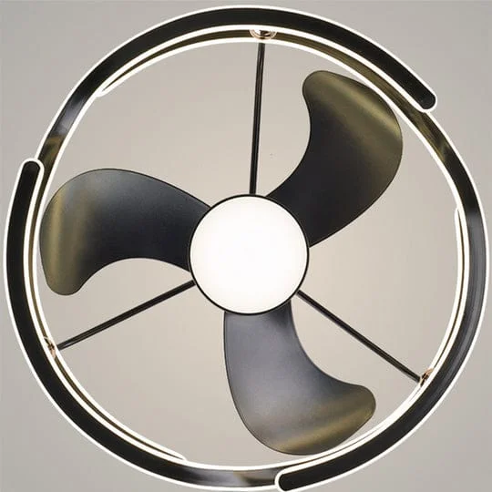 Black Finish Ceiling Fan with Integrated Ring Light - Tricolour