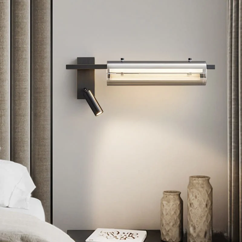 Black LED Wall Lamp with Adjustable Spot Light - Tricolour