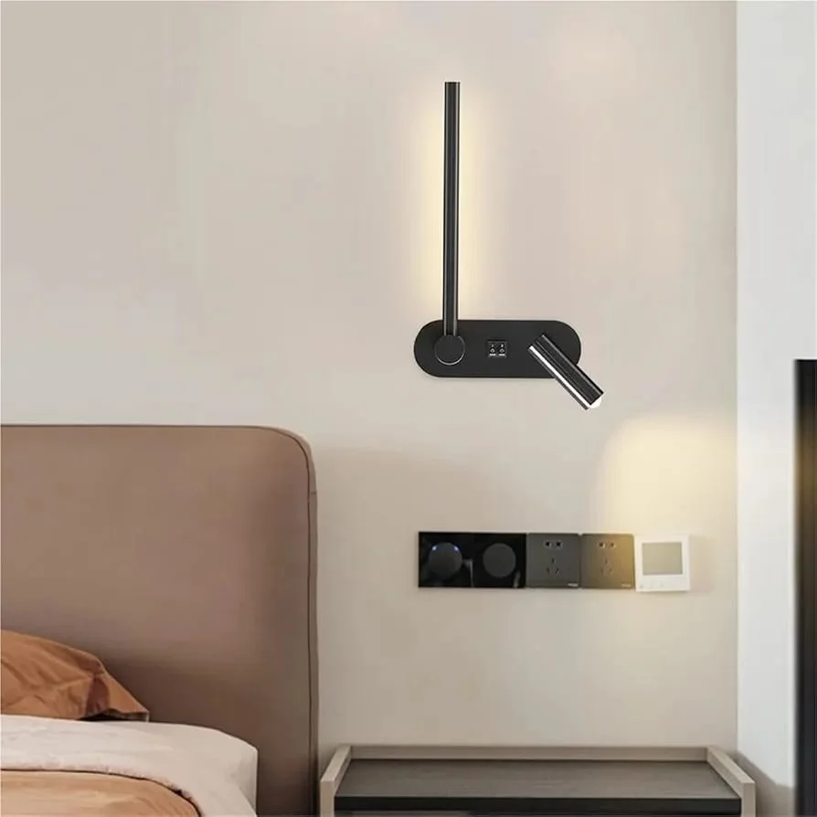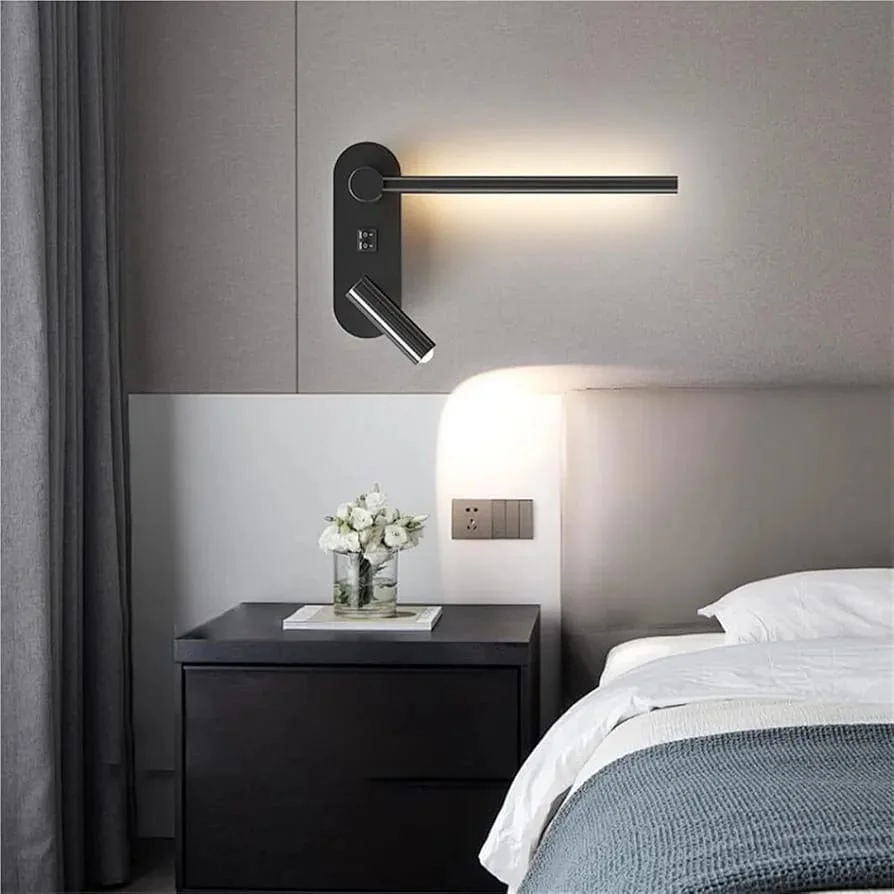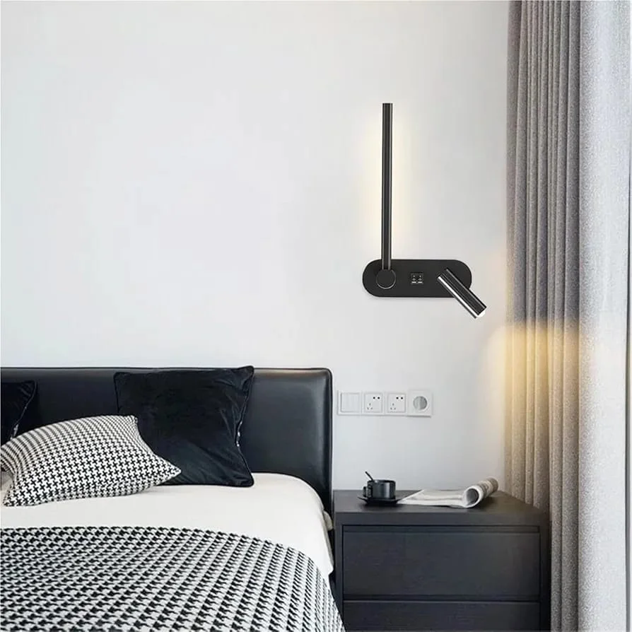 Black LED Wall Lamp with Adjustable Spot Light - Warm White