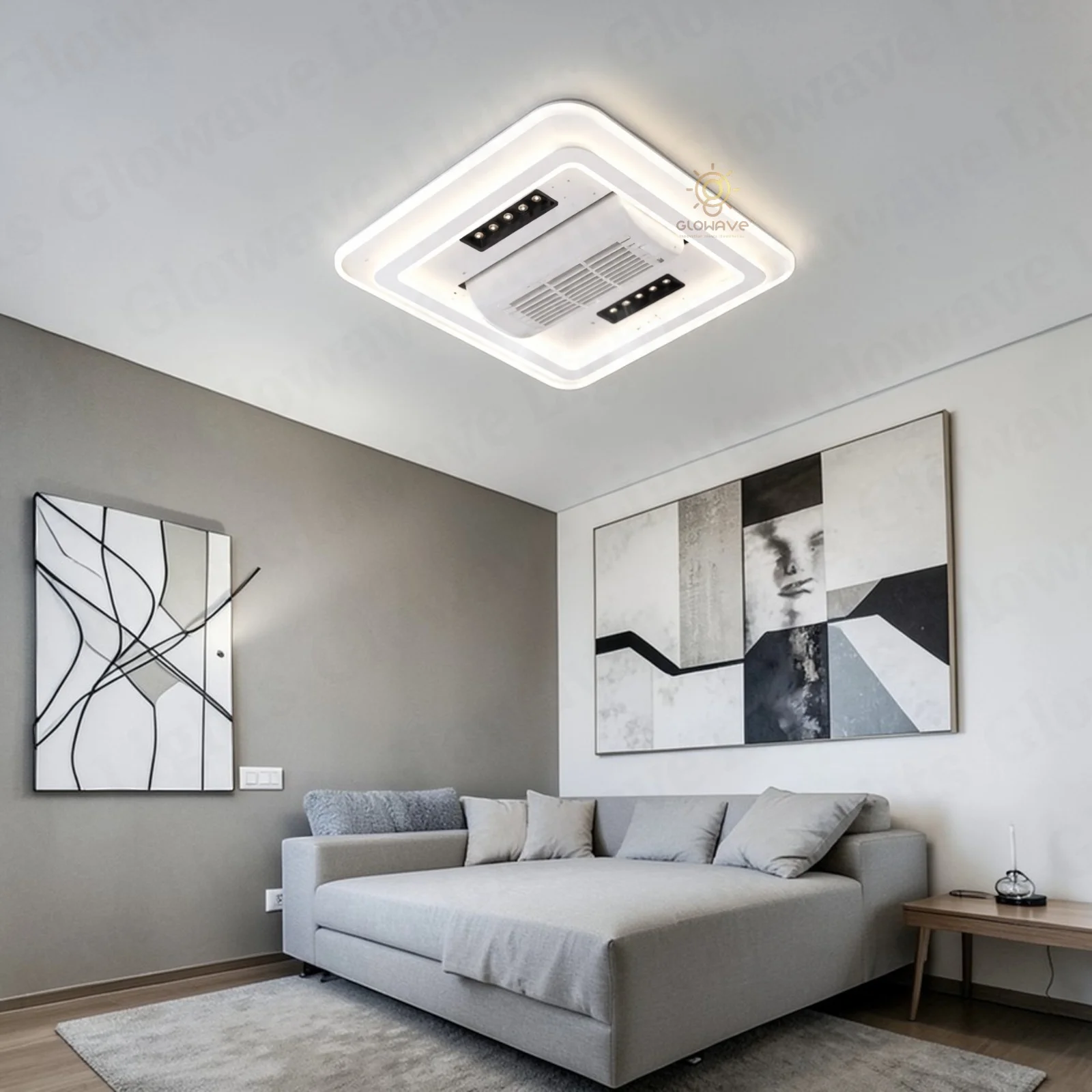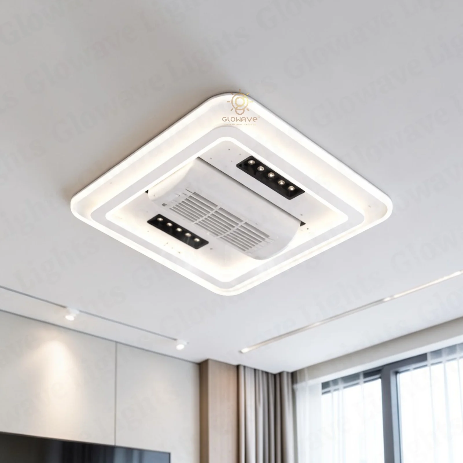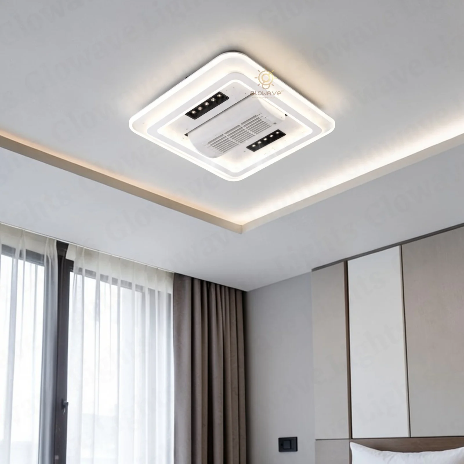 Elevate your living space with the Luxury White Ceiling Fan Light. This stunning fan lighting fixture features a sophisticated design with accents, adding a touch of luxury to any room. With three adjustable color lights, it seamlessly adapts to your desired ambiance. Ideal for living rooms, bedrooms, dining areas, entrances, showrooms, and cafés, this versatile chandelier combines style and functionality. The seamless blades provide efficient air circulation when extended and a sleek, unobtrusive look when retracted. Enjoy a blend of elegance and practicality with this exquisite ceiling fan light.