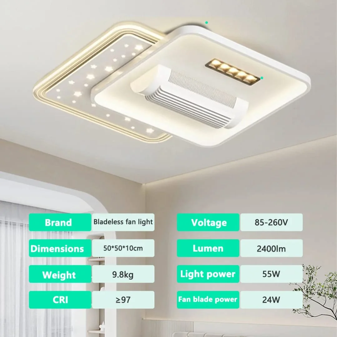 Bladeless Fan with Light White Body Square Ceiling Fan - Tricolour
