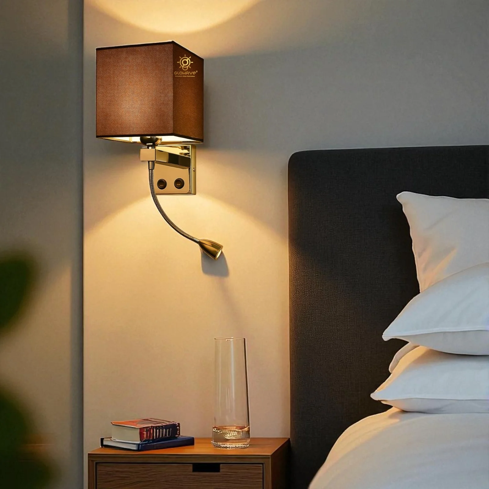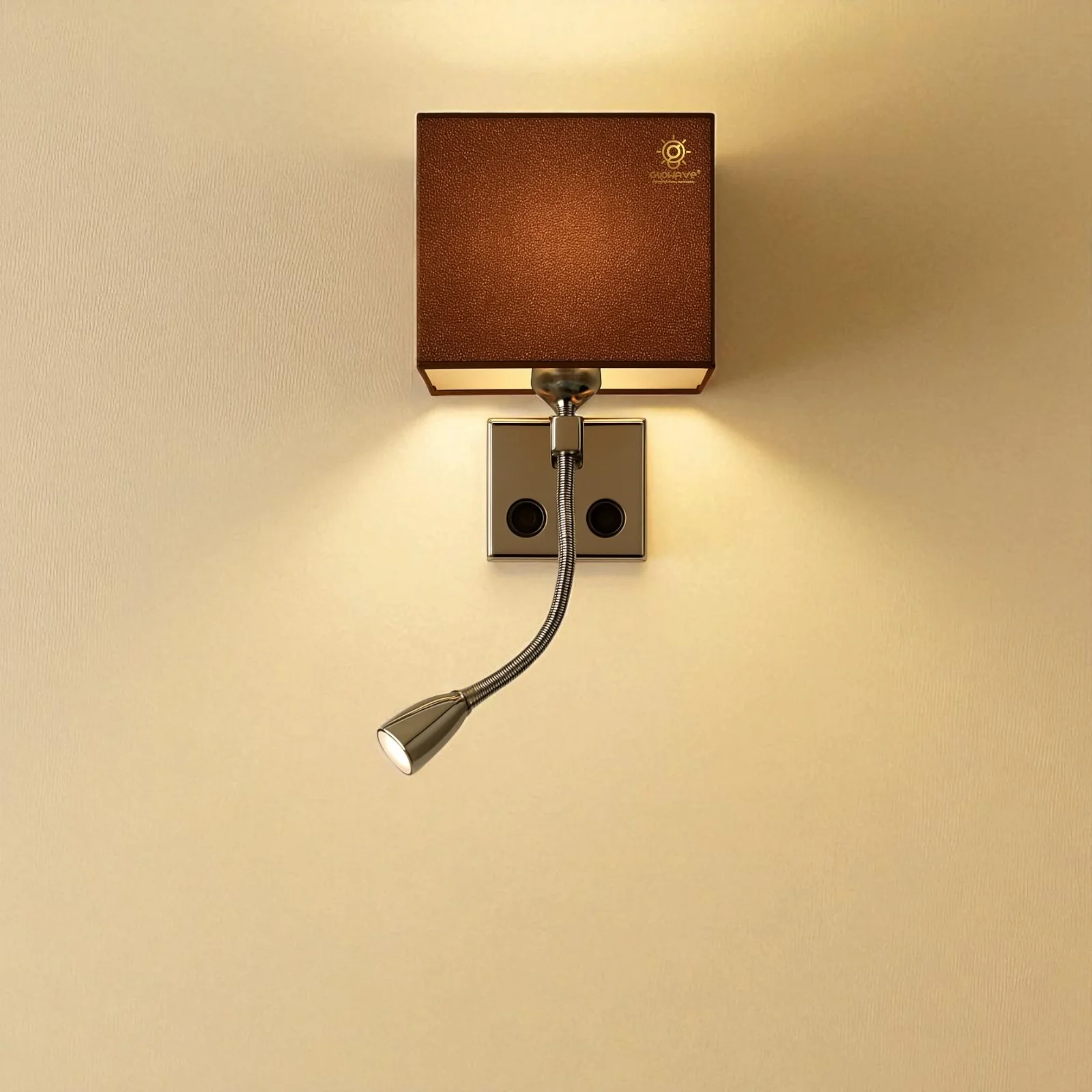 Brown Rectangular Fabric Shade Wall Lamp with Adjustable Spot Light - Warm White (H-2533)