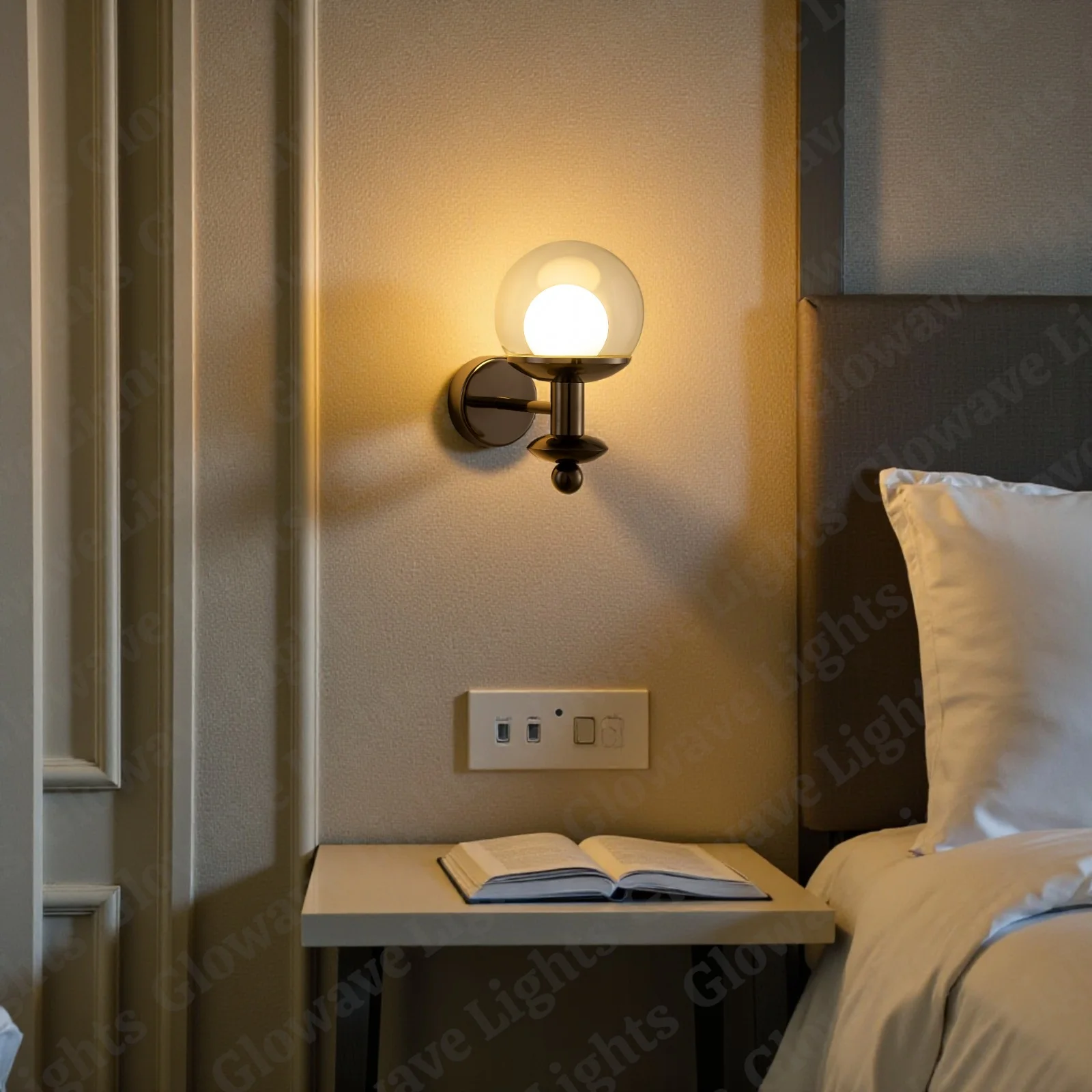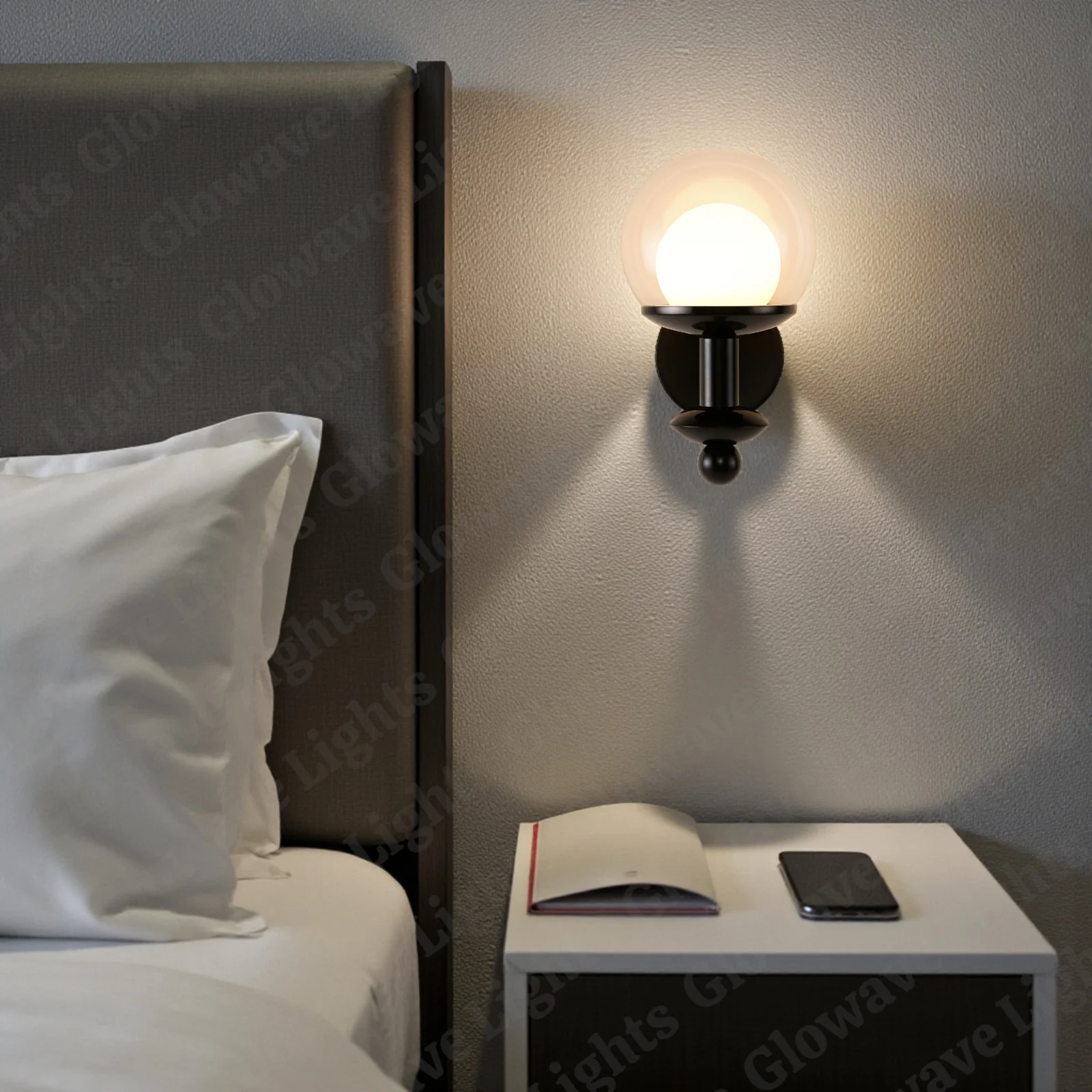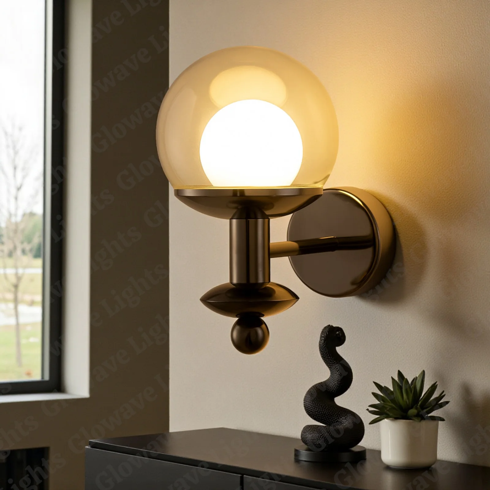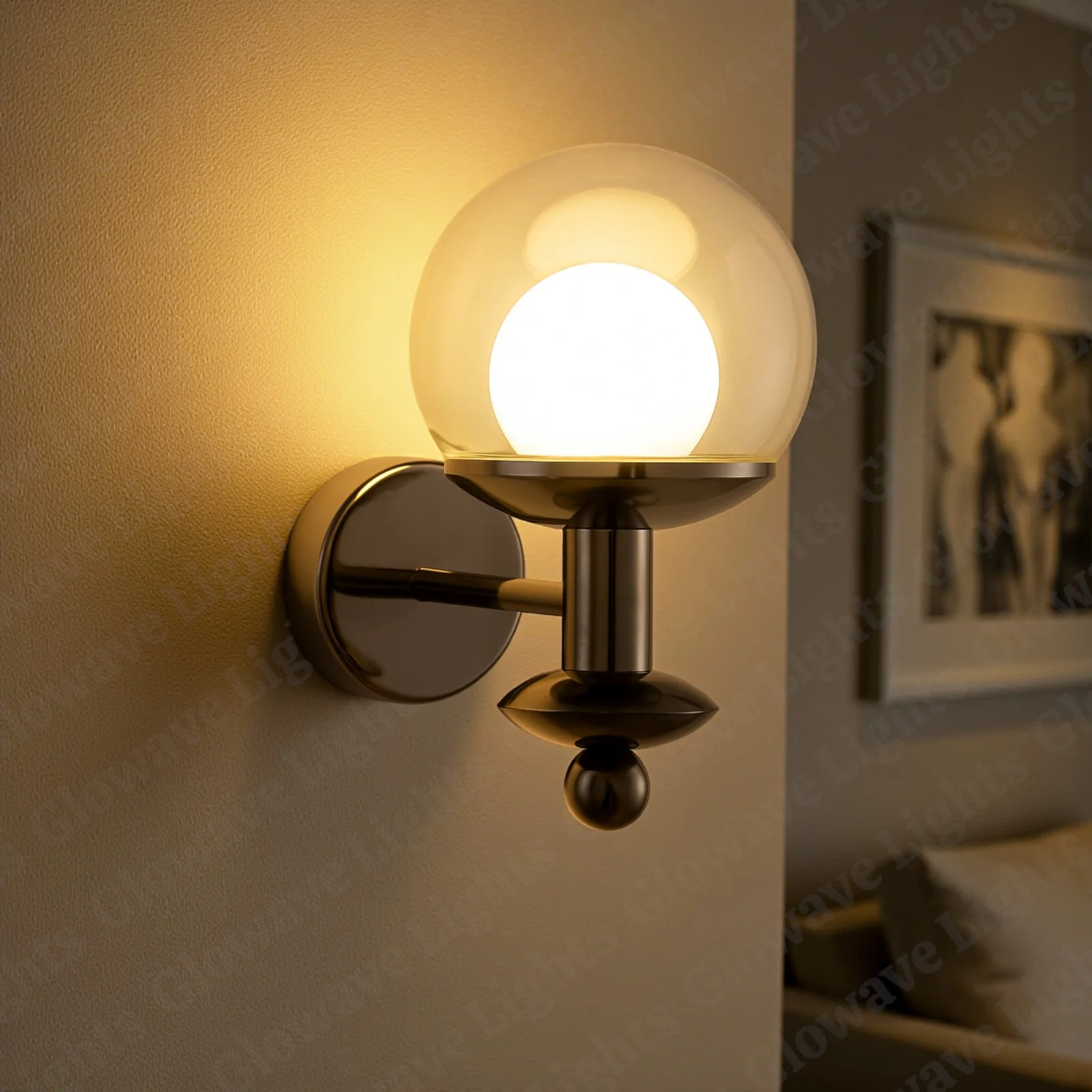 Clear Glass Ball Black Body LED Wall Lamp - Tricolour