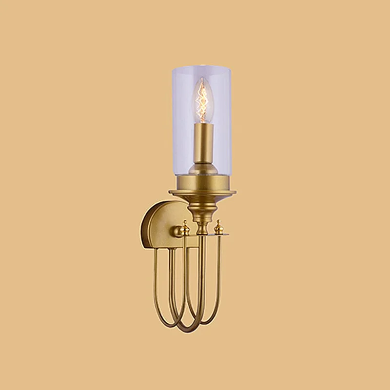 Antique Gold Bedside Wall Sconce Cylindrical Wall Lamp - Tricolour