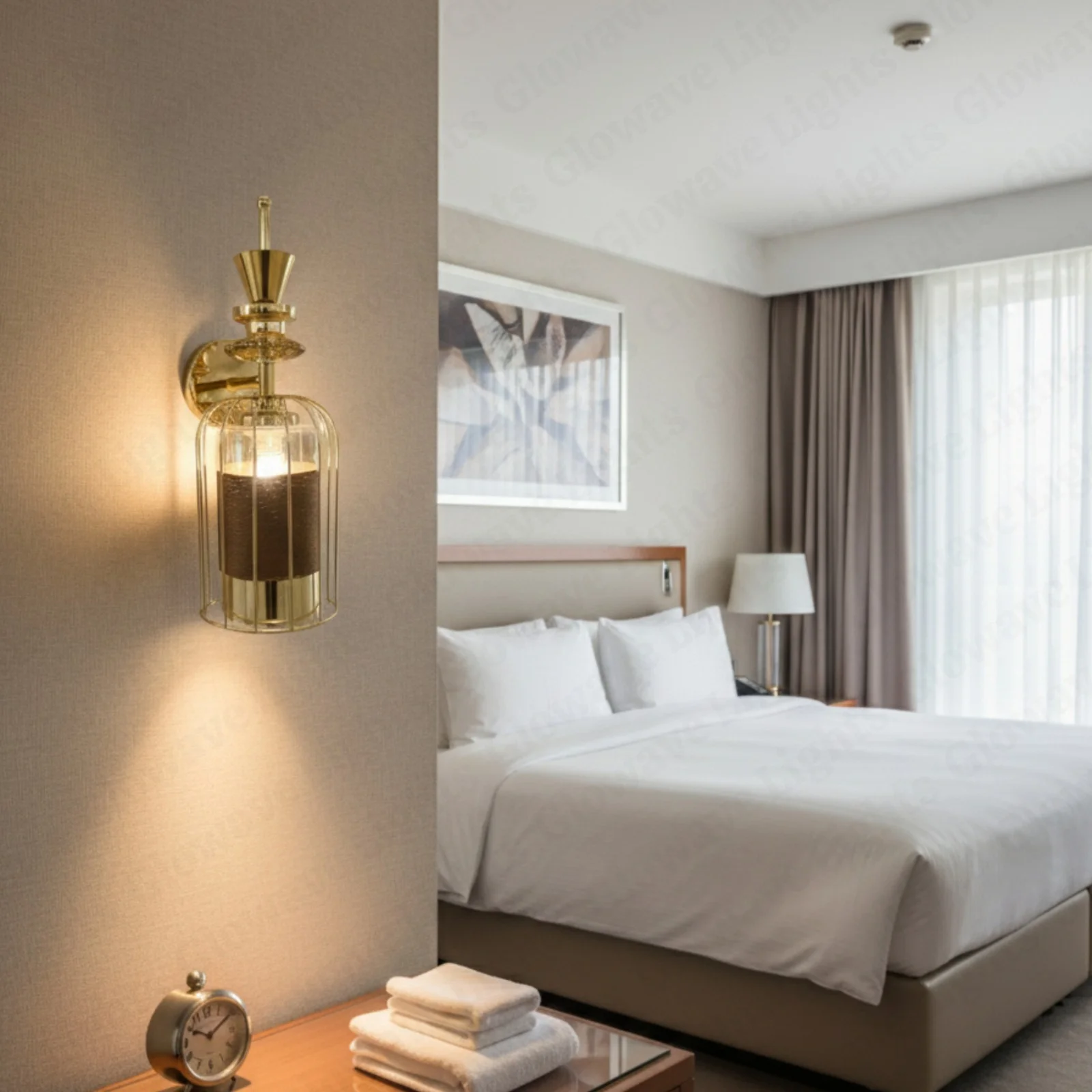 Elevate your living space with the Modern Down clear Glass Golden Finish LED Wall Lamp. This elegant lighting fixture, perfect for your living room, bedroom, or bedside, features a sleek golden finish and contemporary glass design. It provides a warm white glow that creates a cozy ambiance.