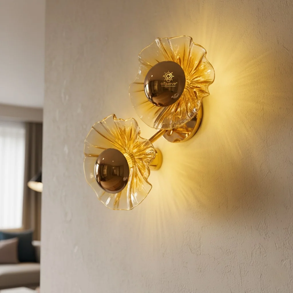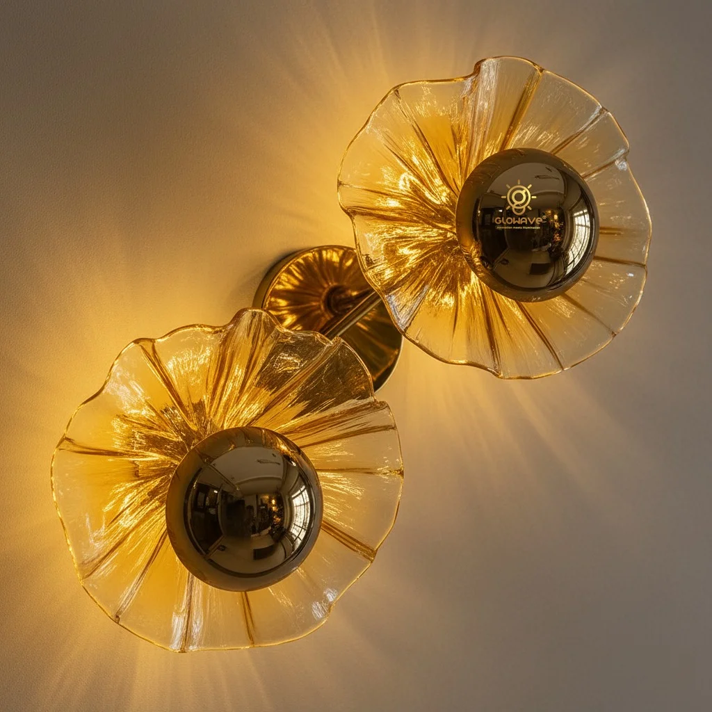 Creative Double Head Amber Glass Golden Finish LED Light Wall Lamp - Warm White