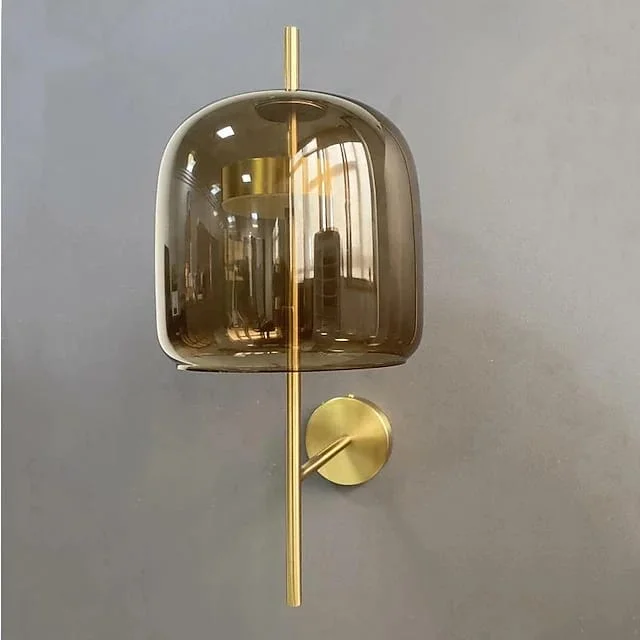 - Stylish Design: Down smoky glass lampshade with a golden finish metal body