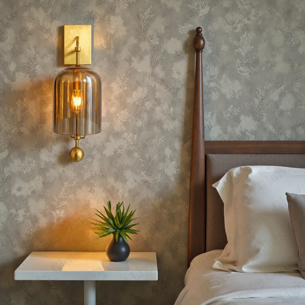 Creative Down Smoky Glass Golden Wall Lamp - Warm White