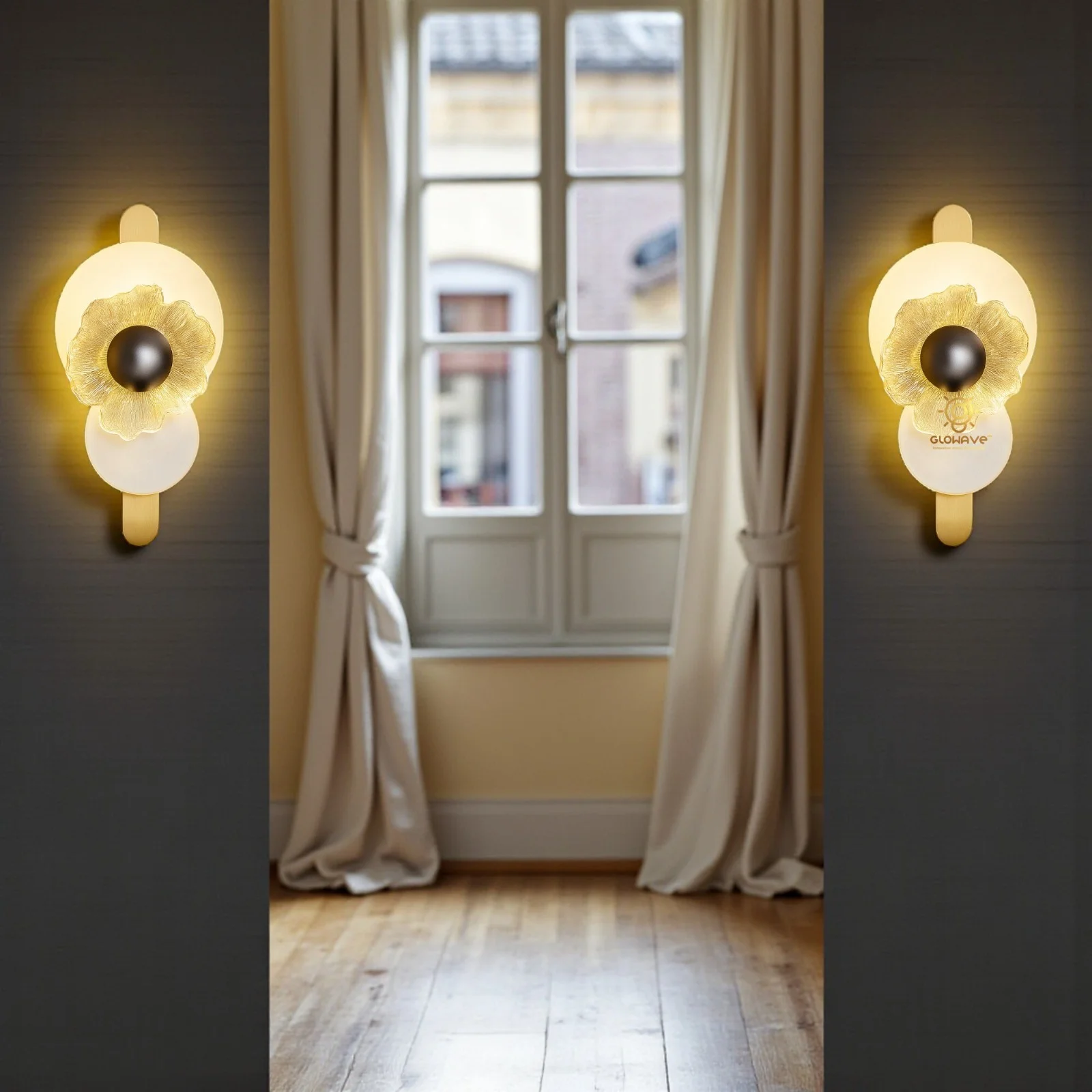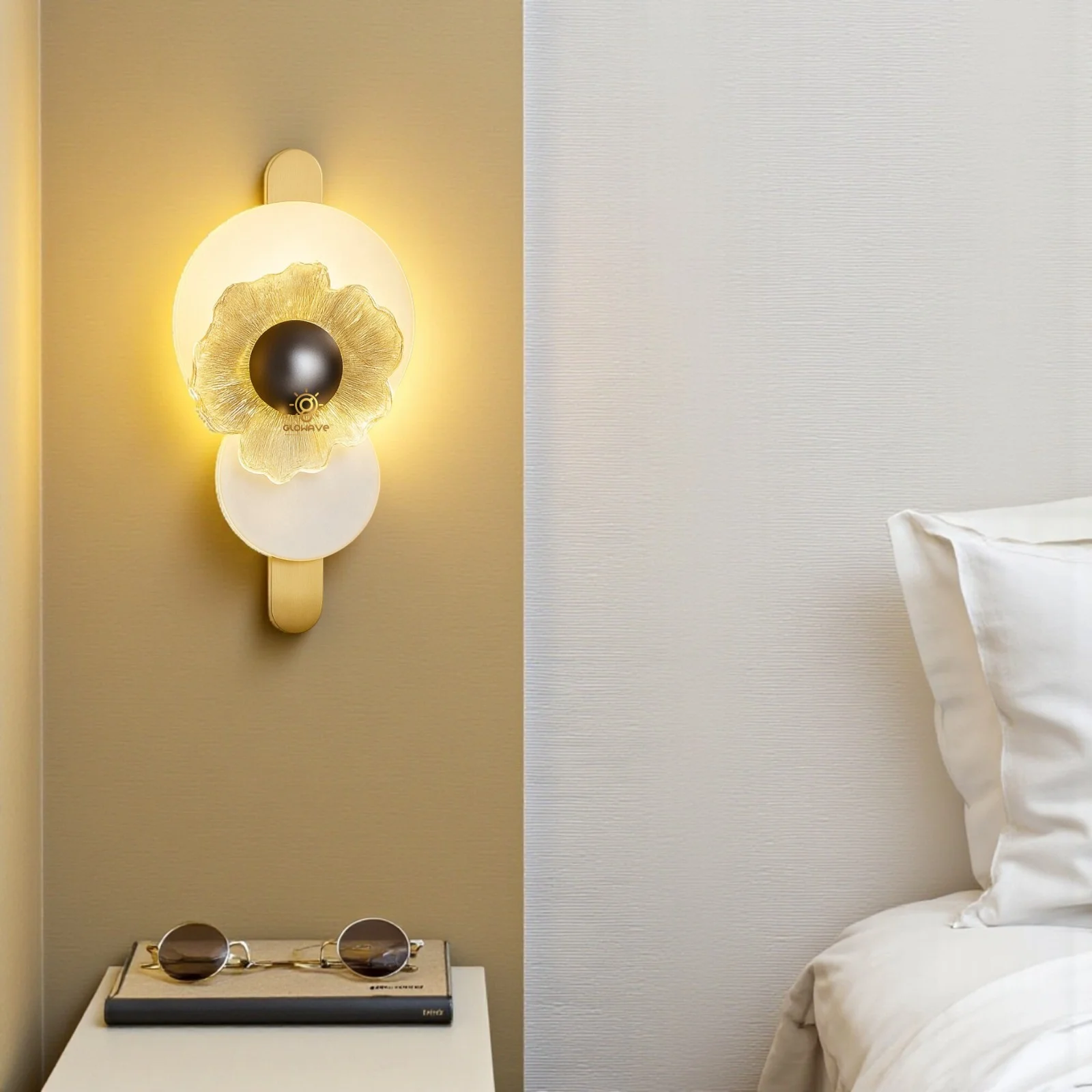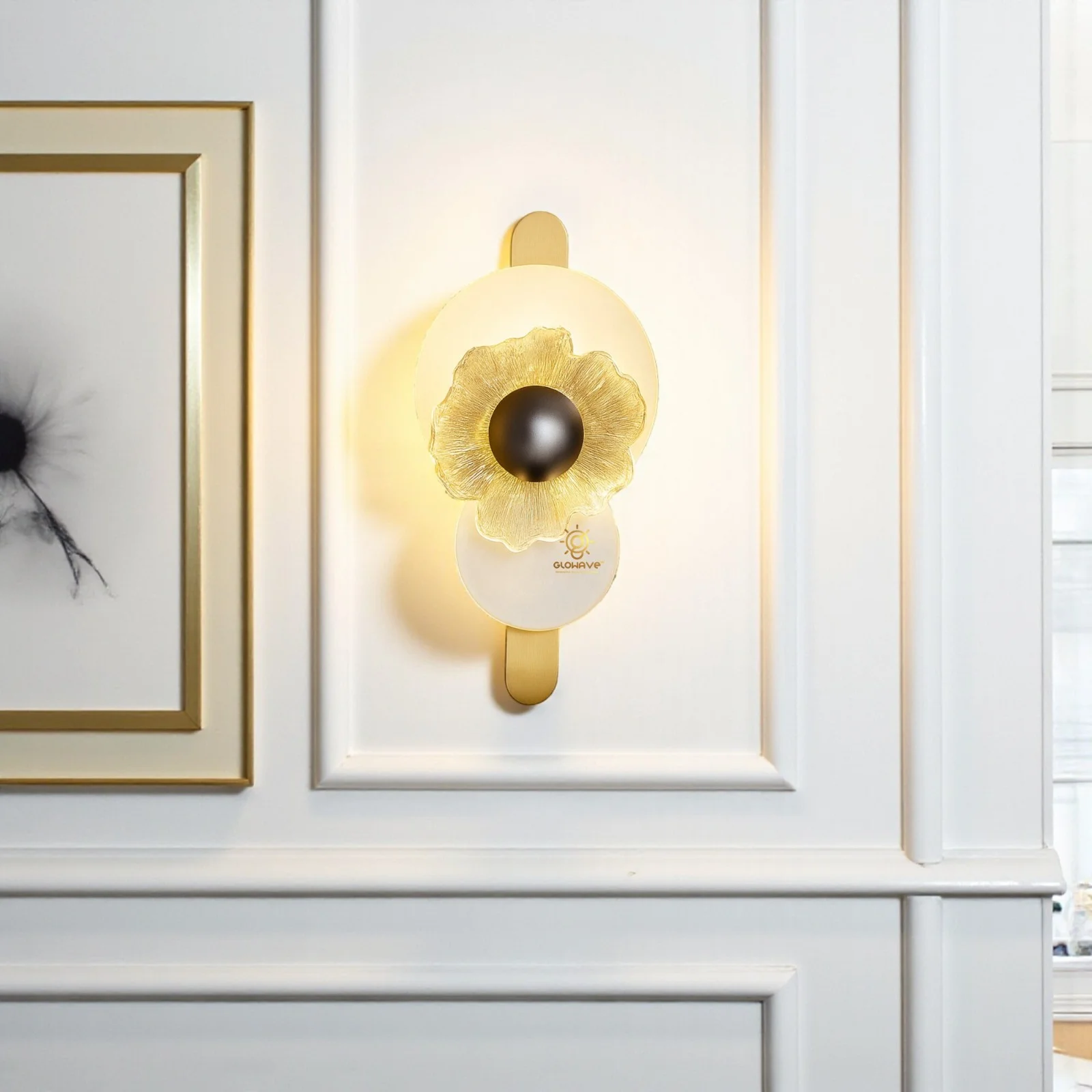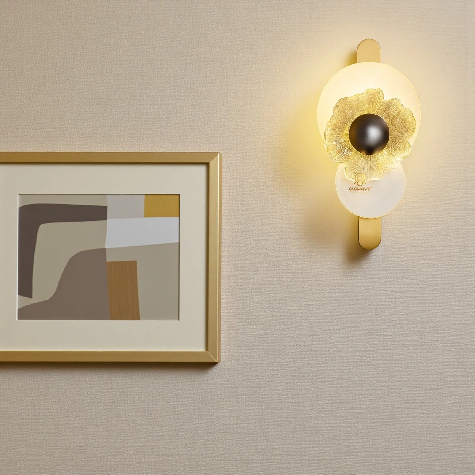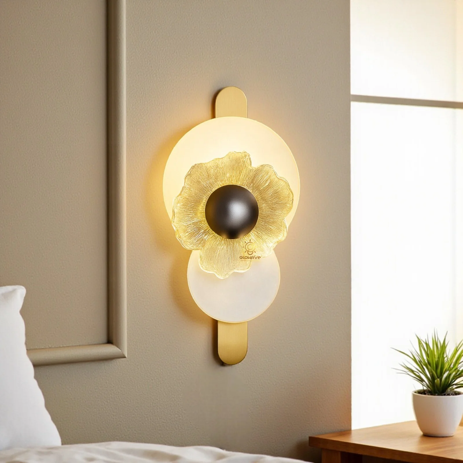 Crystal Glass Golden Flower Wall Lamp - Tricolour