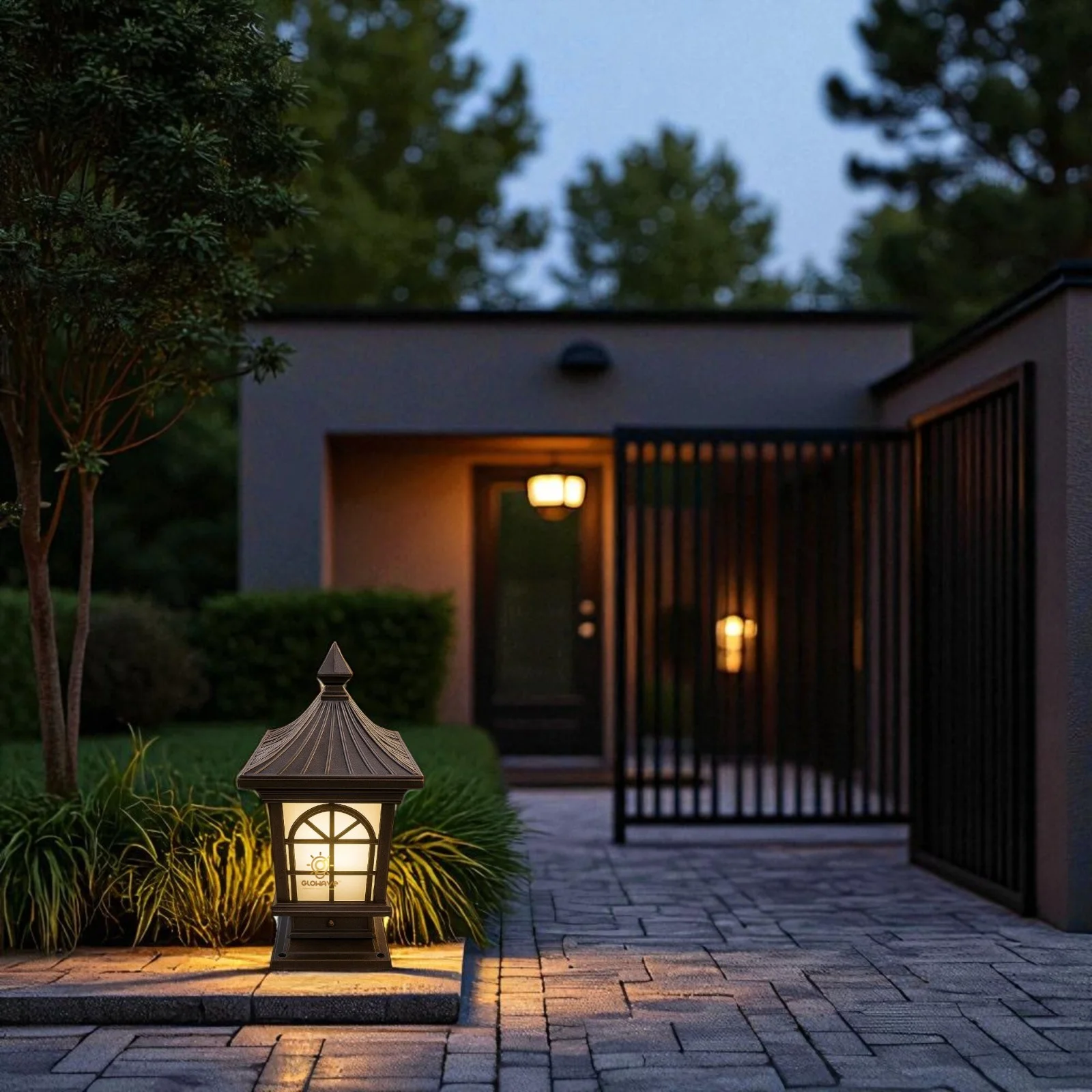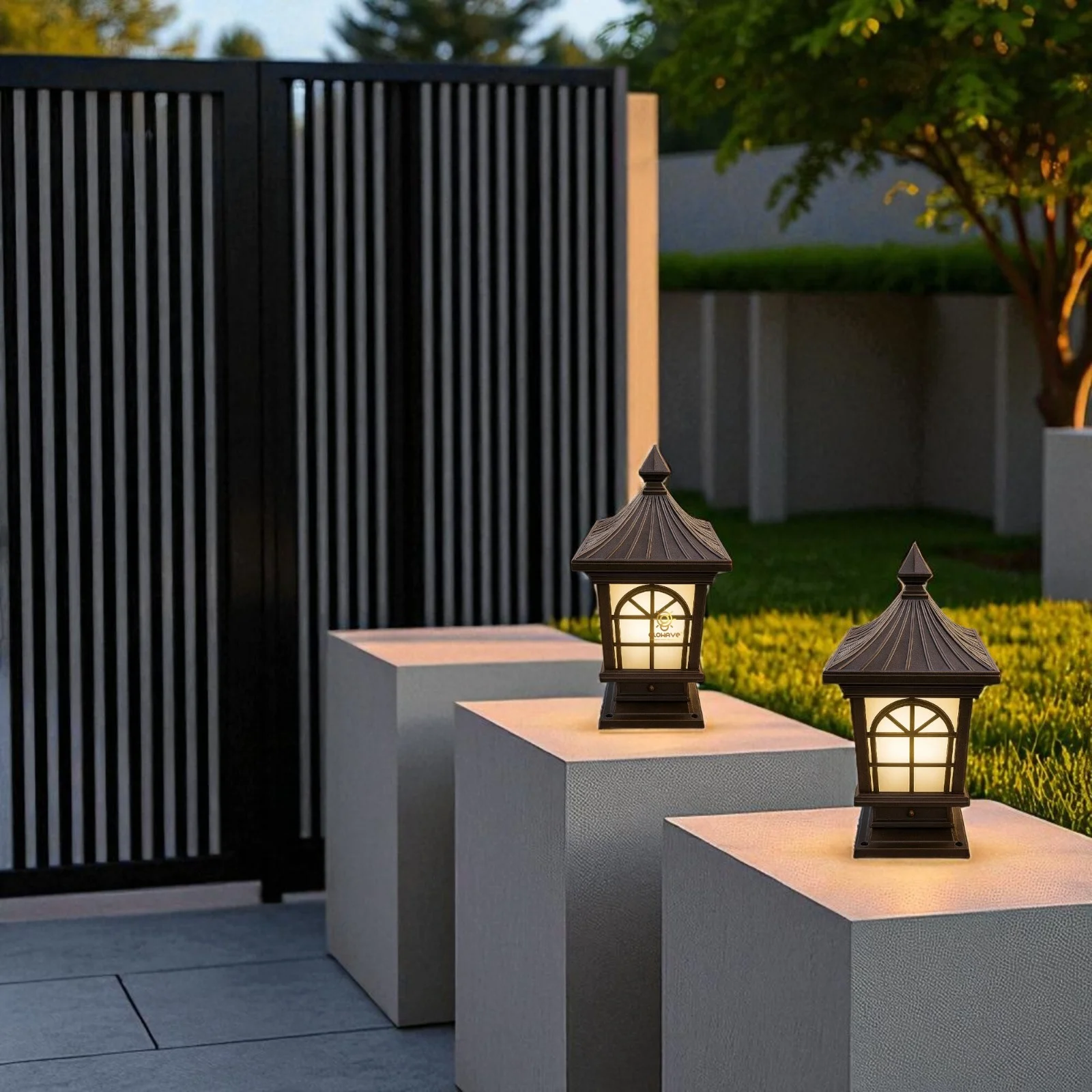 The Glowave Decorative Outdoor Black Square Post Light is a beautifully designed pillar lamp that adds elegance and functionality to your outdoor spaces. Crafted with a durable black finish, this lantern-style post light offers a classic, vintage look while enhancing the ambiance of your patio, fence deck, doorway, or porch. With a waterproof design, it is built to withstand the elements, ensuring long-lasting performance and reliable illumination year-round. The warm white light creates a soft, welcoming glow, ideal for lighting pathways, entrances, or outdoor gatherings. This column light is a perfect blend of style and practicality, offering both decorative appeal and dependable outdoor lighting.