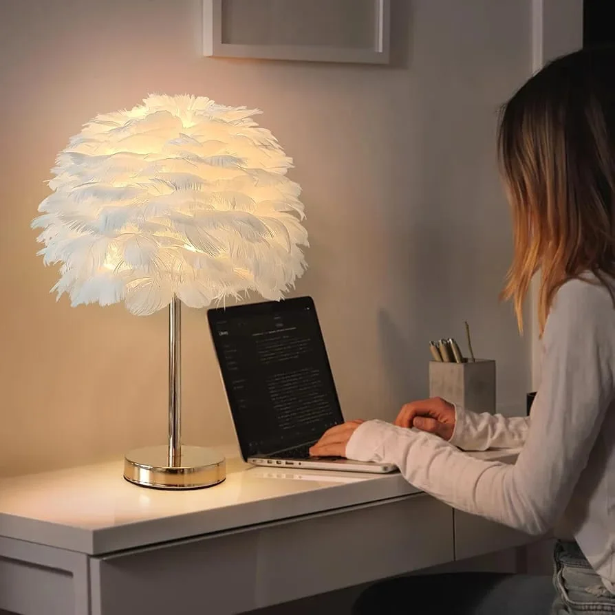 Desk Lamp Feather Lamp Cover Table Lamp - Warm White (Bulb Included) (T-5124)