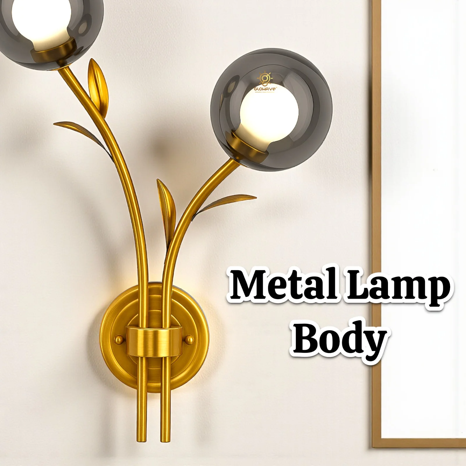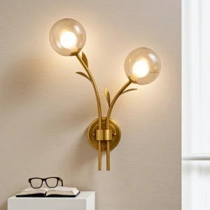 Elevate your living space with the Modern Double Smoky Glass Circular Shape Balls Golden Finish LED Wall Lamp. This elegant lighting fixture, perfect for your living room, bedroom, or bedside, features a sleek golden finish and contemporary glass balls design.