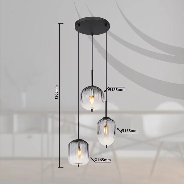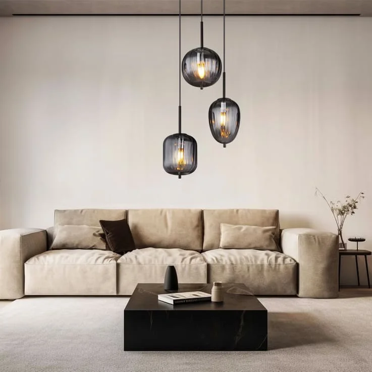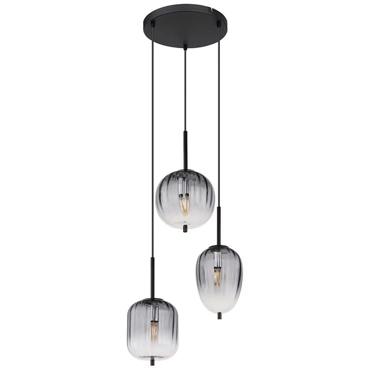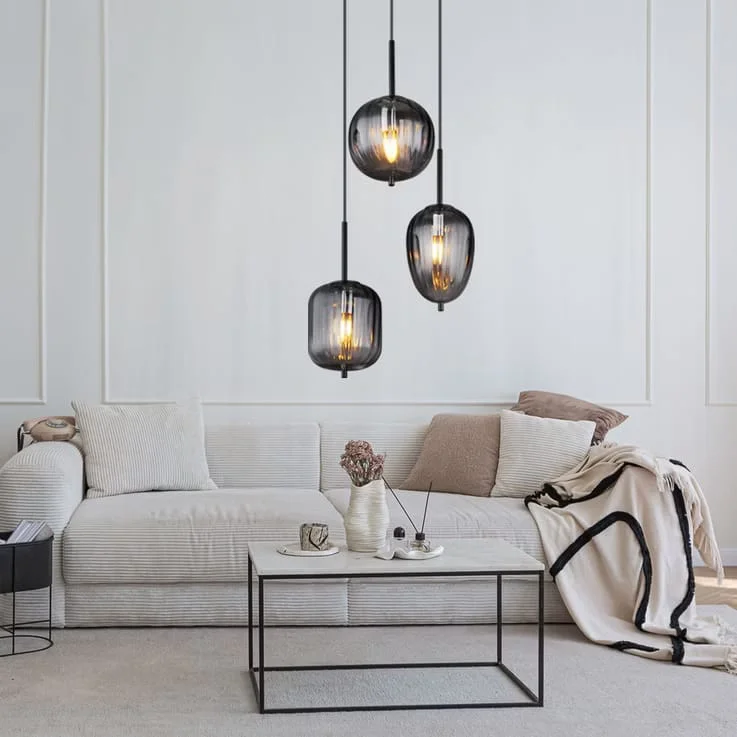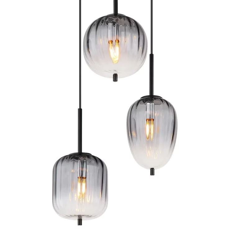 European Golden Smoky Glass Set of 3 Pendant Hanging Light - Warm White