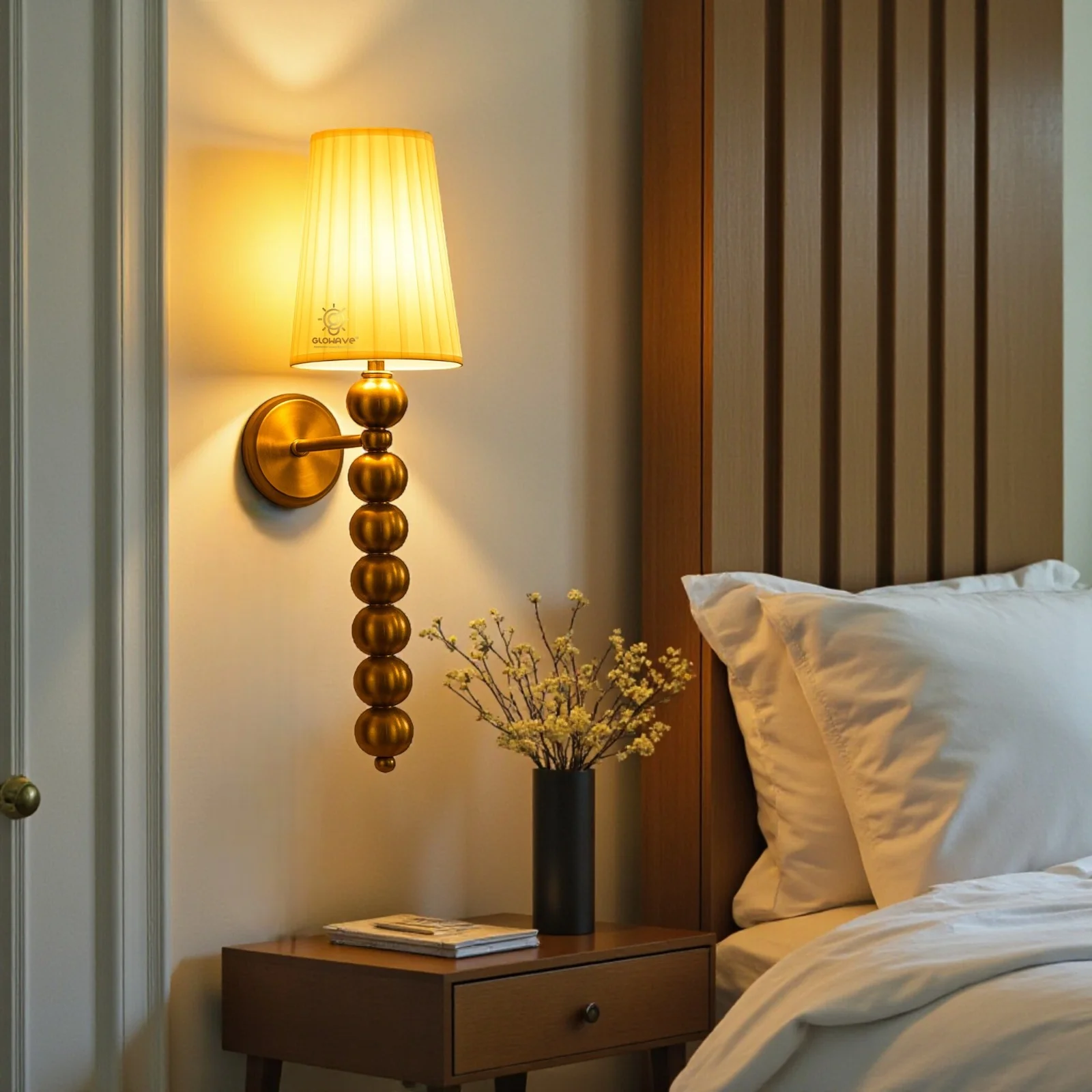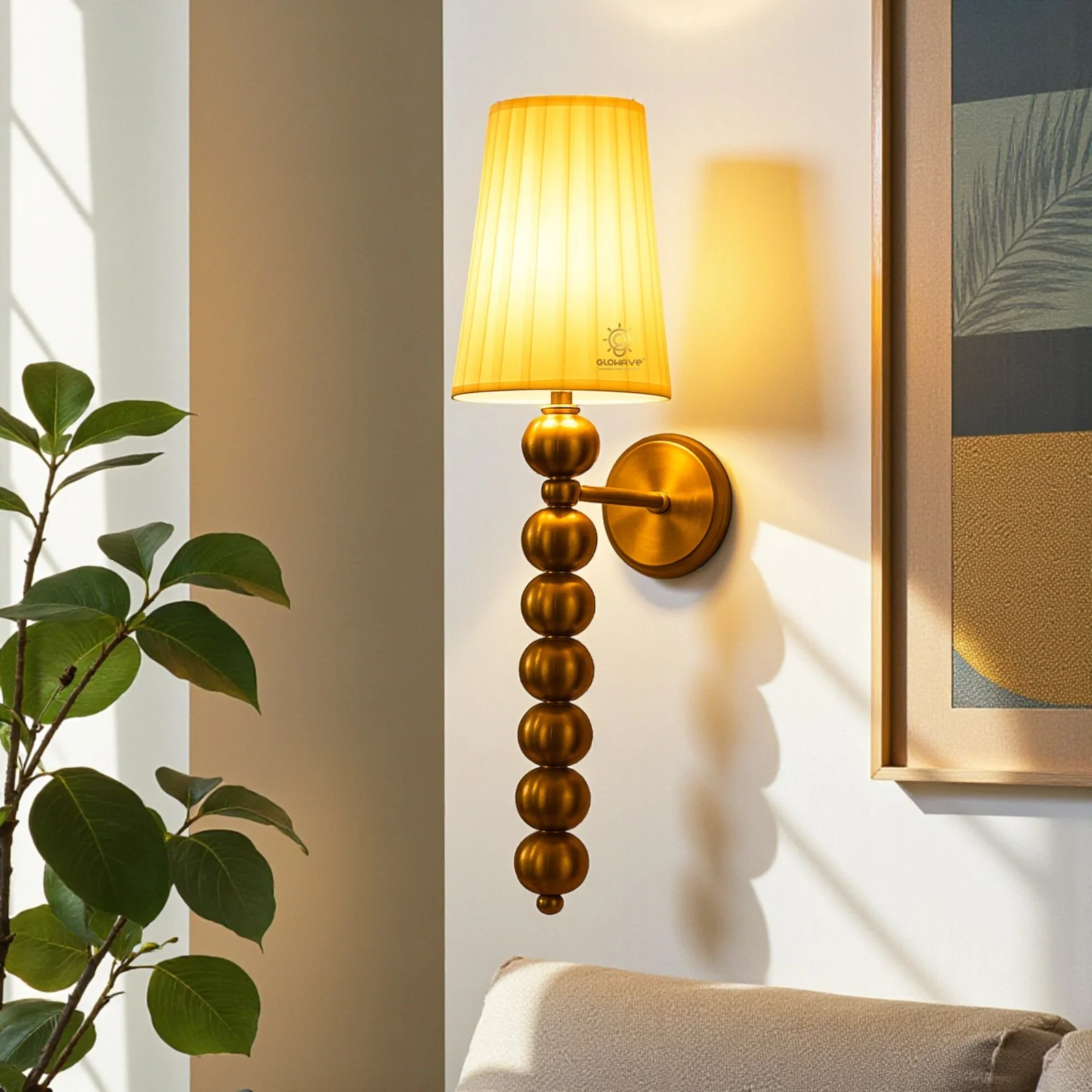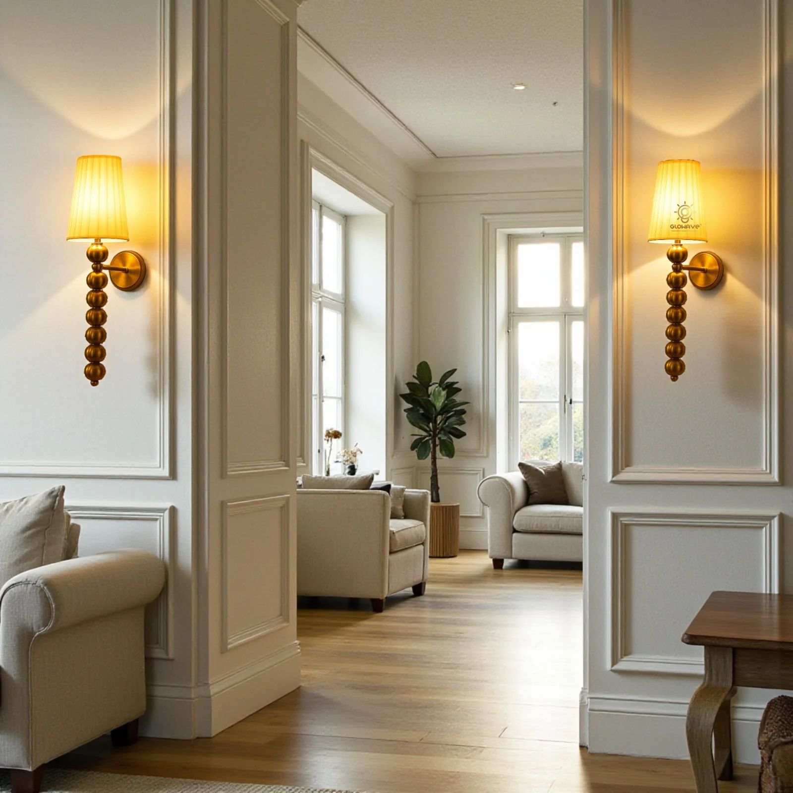 - Stylish Design: Gold Finish White Fabric Shade Wall Sconce.