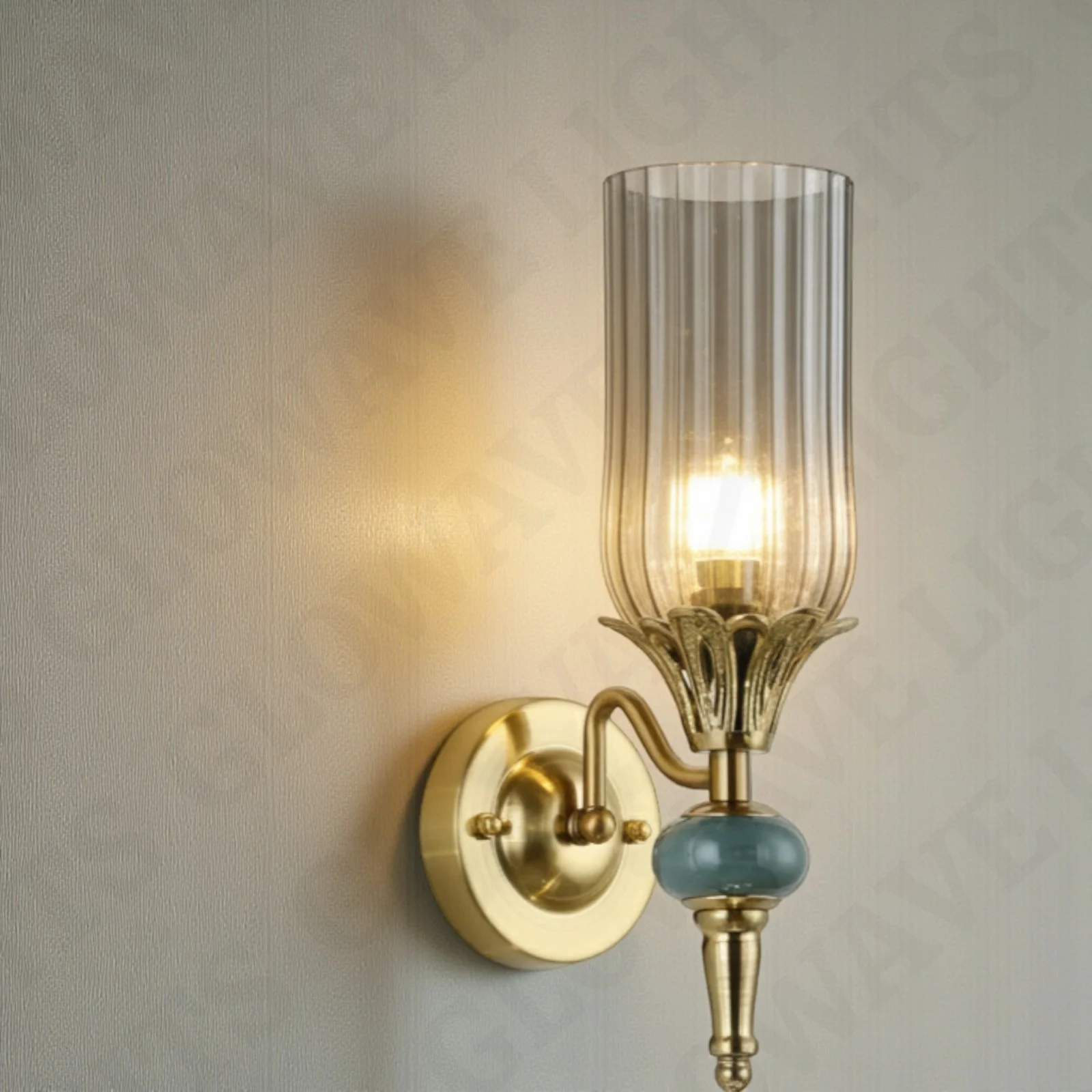 Enhance your home decor with the Gold Finish Crystal Smoky Glass Shade Wall Lamp. This exquisite sconce fixture, perfect for living rooms, bedrooms, and bedsides, boasts a timeless antique brass finish and clear glass design. It casts a warm white light, creating a cozy and nostalgic atmosphere. Ideal for adding vintage charm to any space.