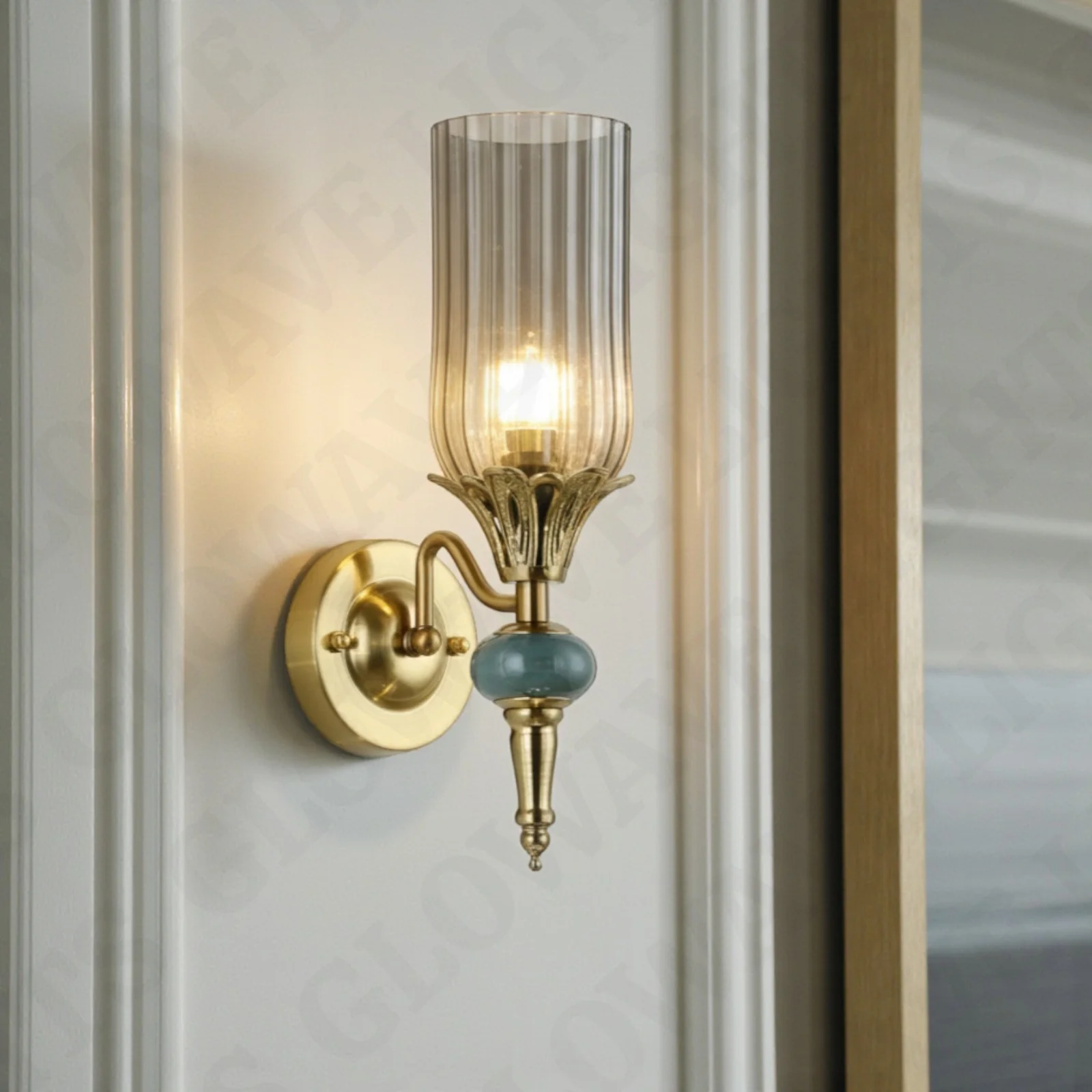 - Stylish Design: Gold Finish Smoky Glass Shade Wall Sconce.