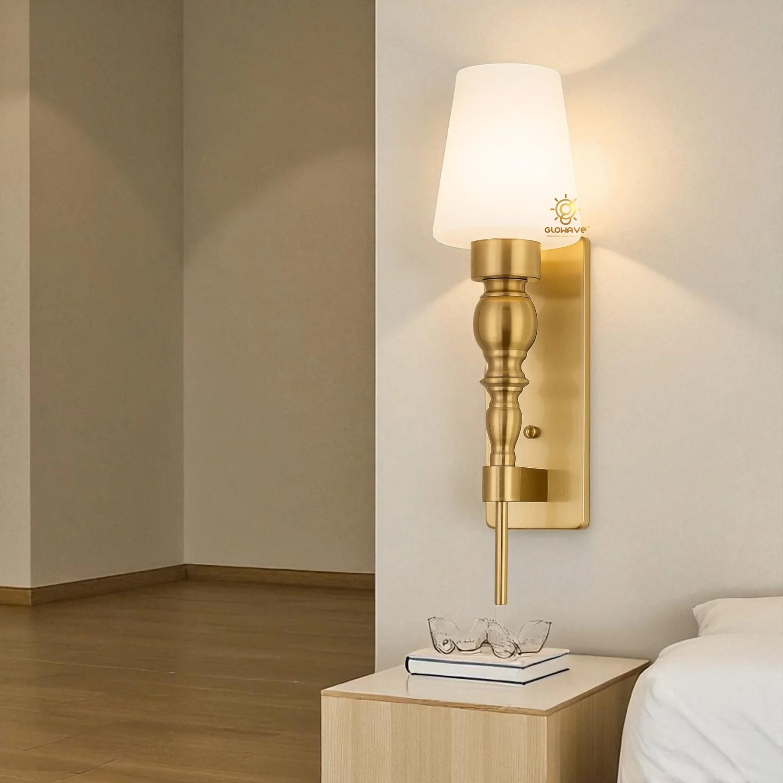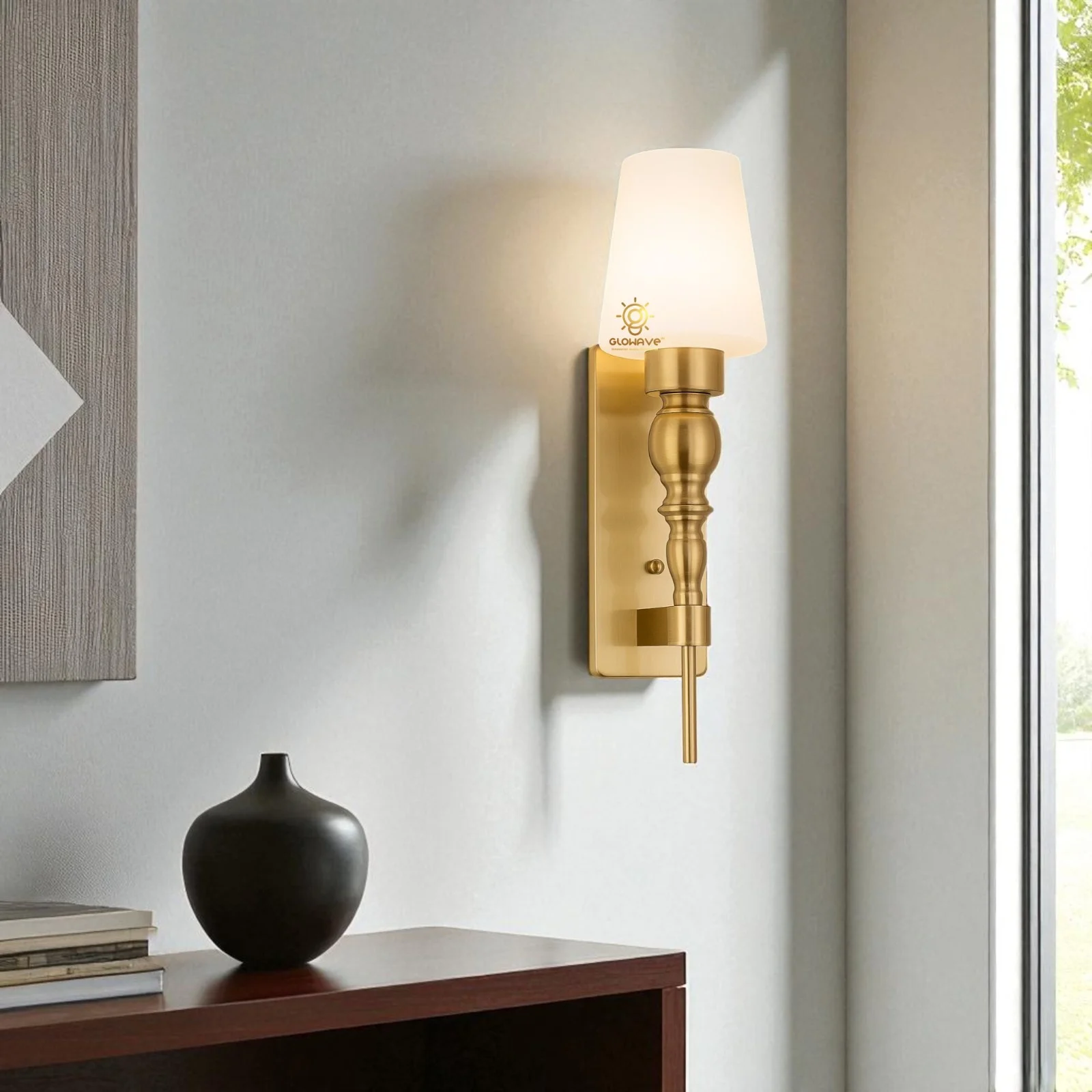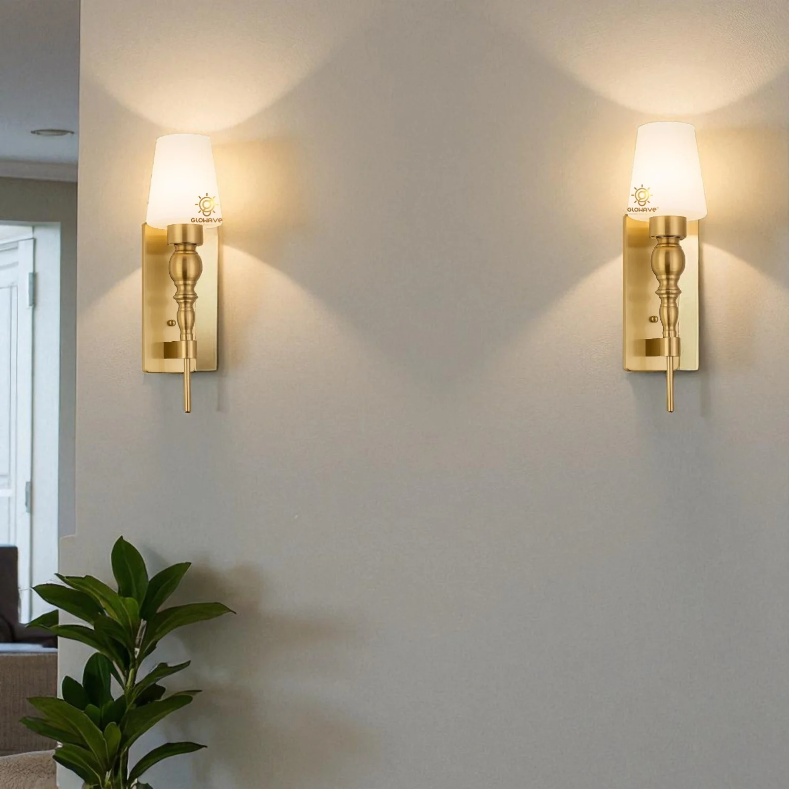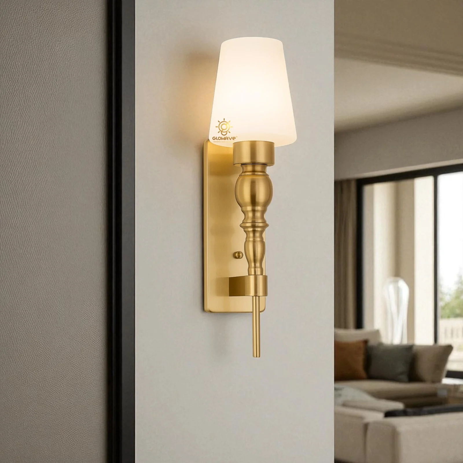 - Stylish Design: Gold Finish Glass Shade Wall Sconce.