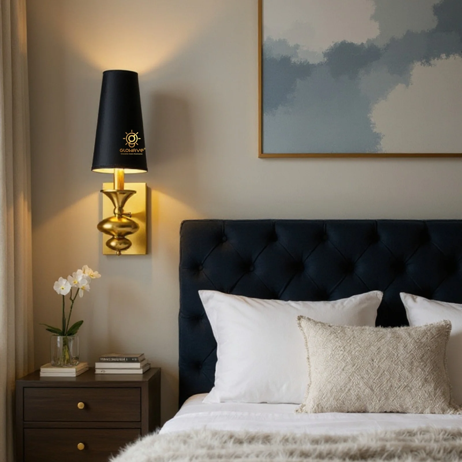 - Stylish Design: Gold Finish Black Fabric Shade Wall Sconce.