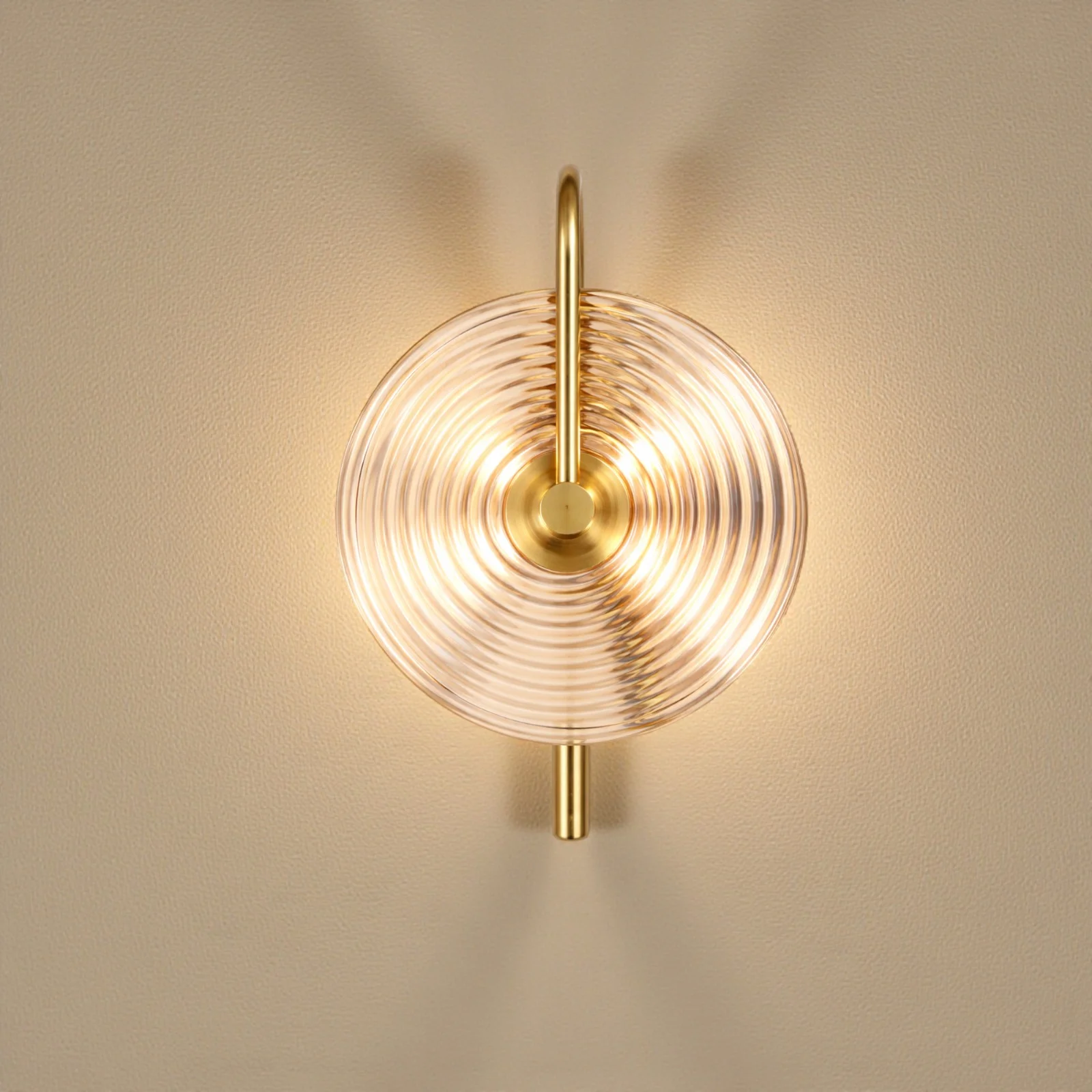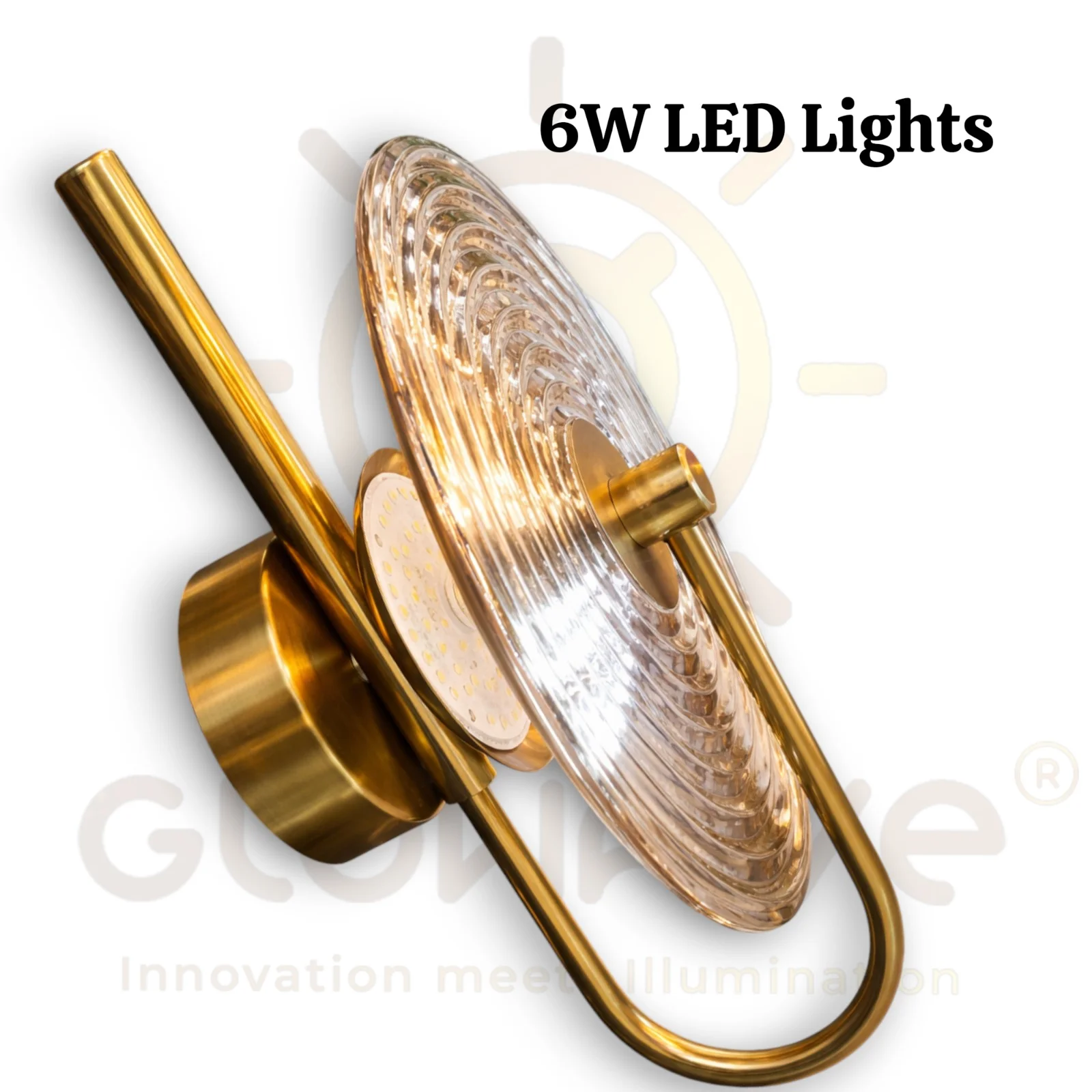 - Stylish Design: Gold Finish Glass Round Shape Wall Sconce.