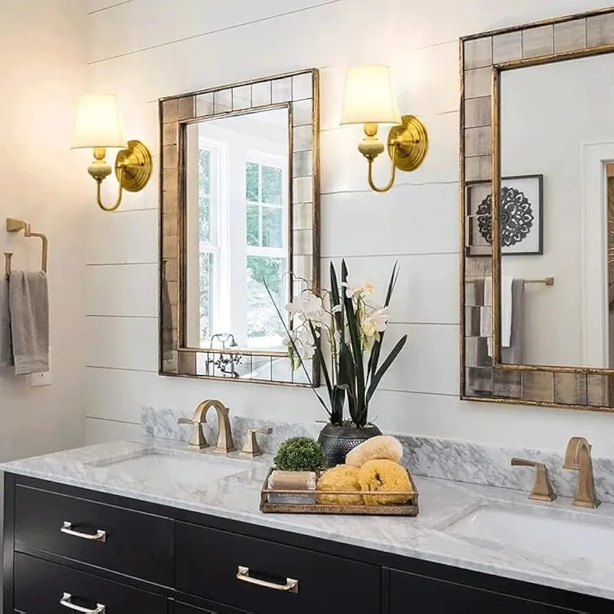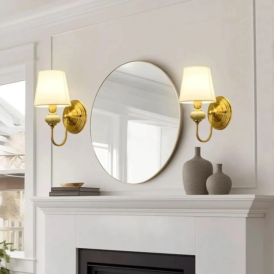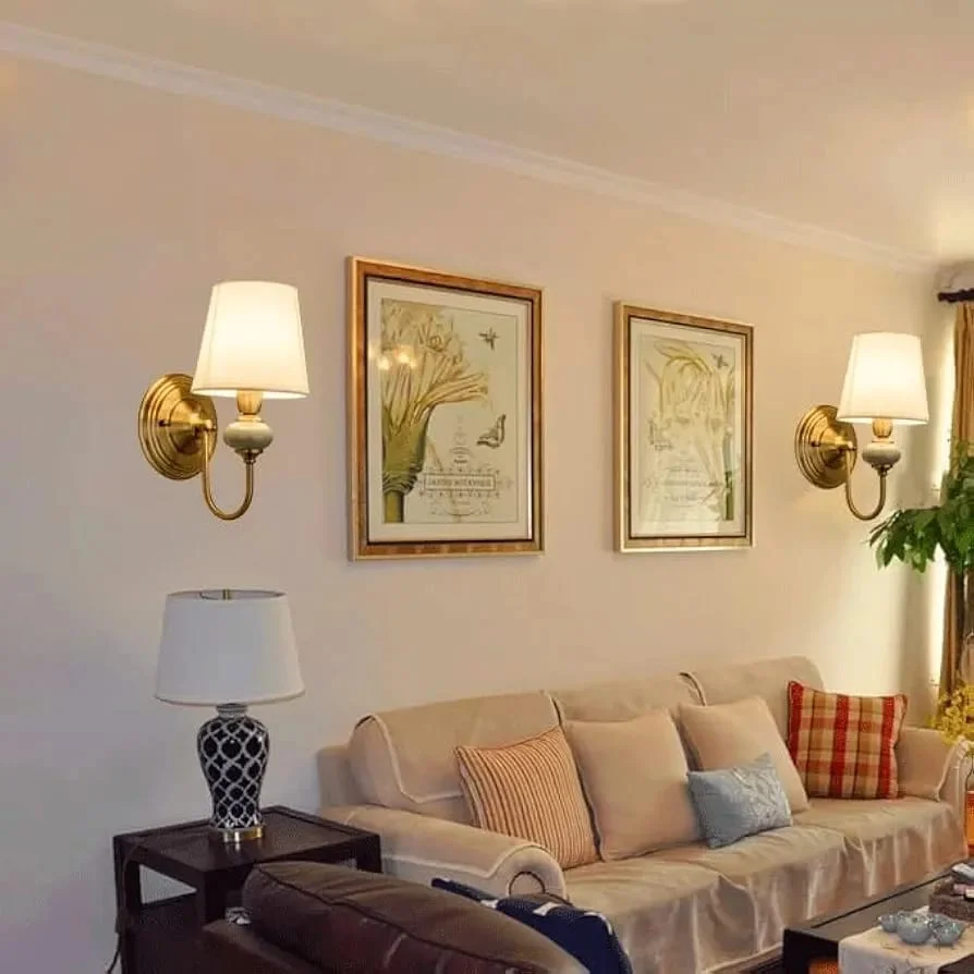 Gold Wall Light with Fabric Shade, Elegant Wall Sconce Lamp - Warm White