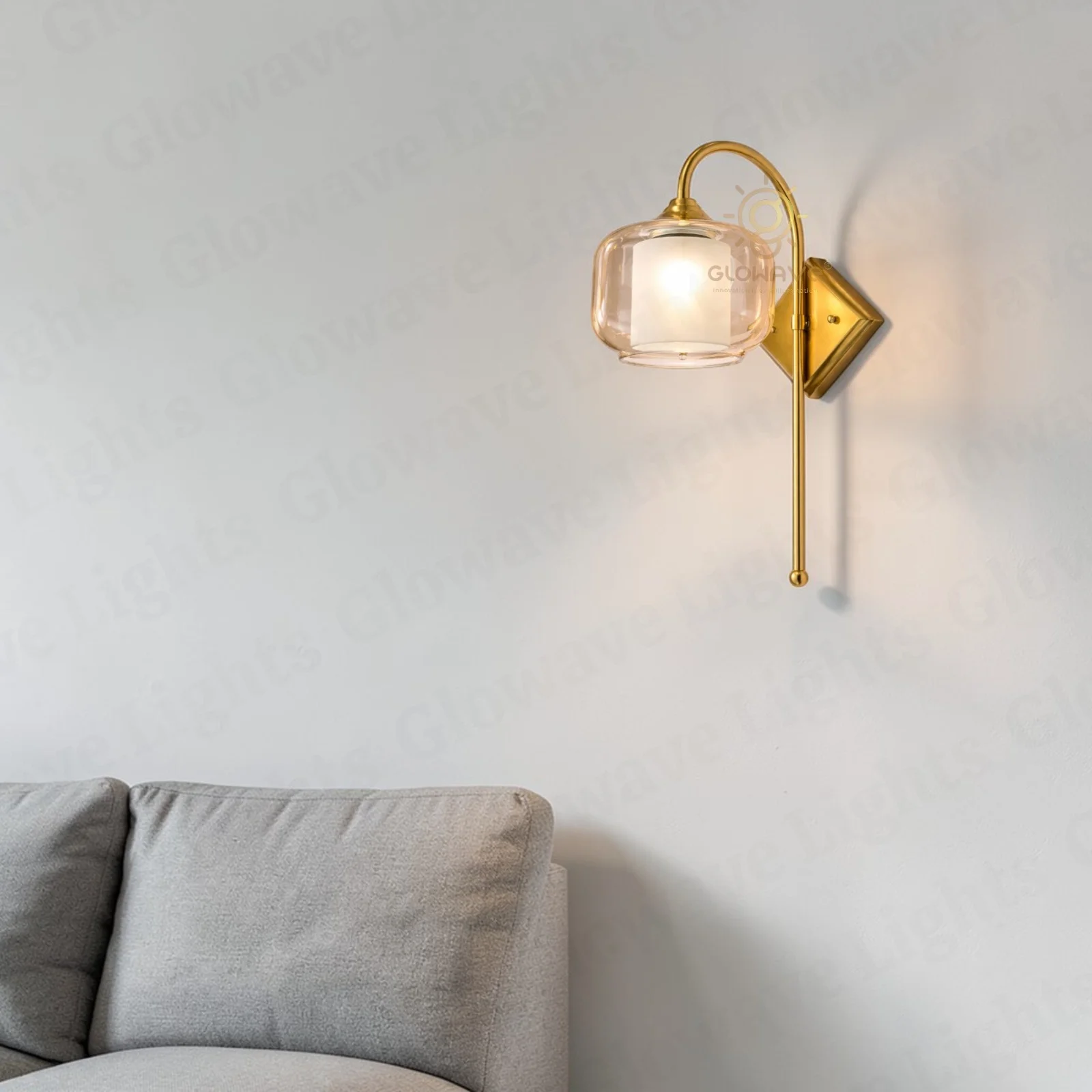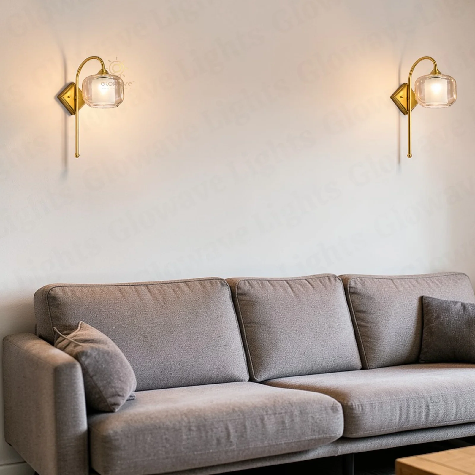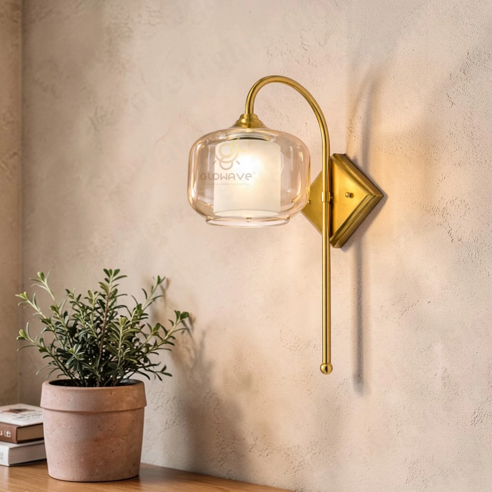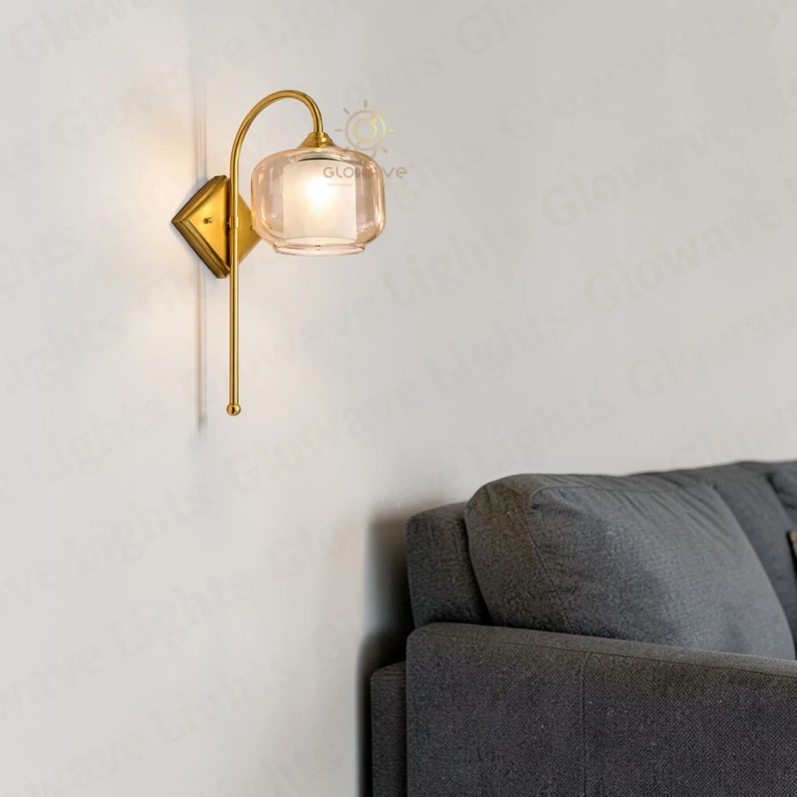 Upgrade your interior décor with this modern gold double glass wall light featuring a stylish square base. Designed with a sleek metal arm and elegant glass shade, this wall sconce adds a luxurious and contemporary touch to any space. The double glass design enhances the lighting effect, creating a soft and warm glow that makes your room feel comfortable and inviting.