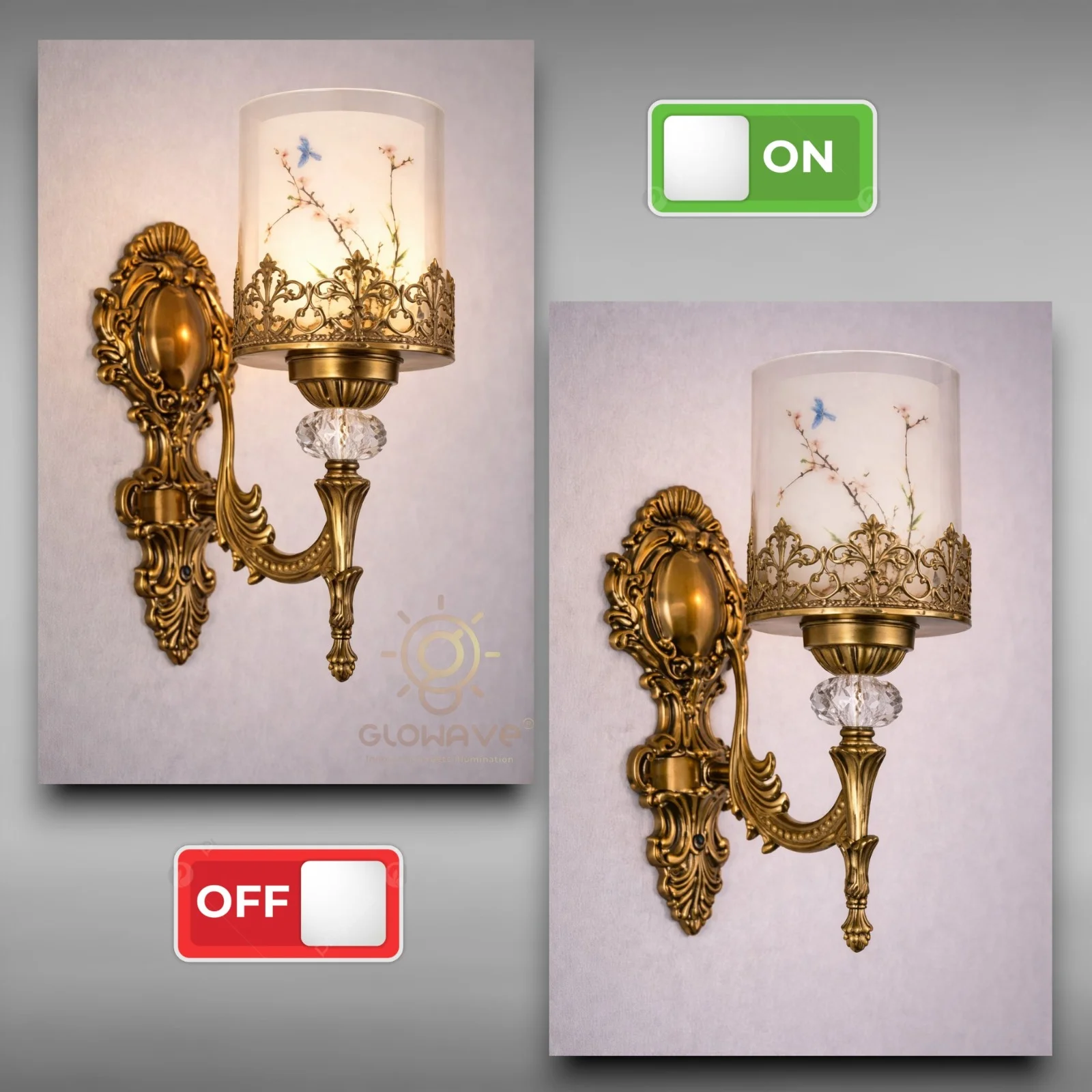 Enhance your interiors with the timeless elegance of the Glowave Vintage Wall Light, crafted to bring a luxurious and classic charm to your living space. Designed with an intricately detailed antique gold metal body, this decorative wall sconce adds sophistication and style to any wall.